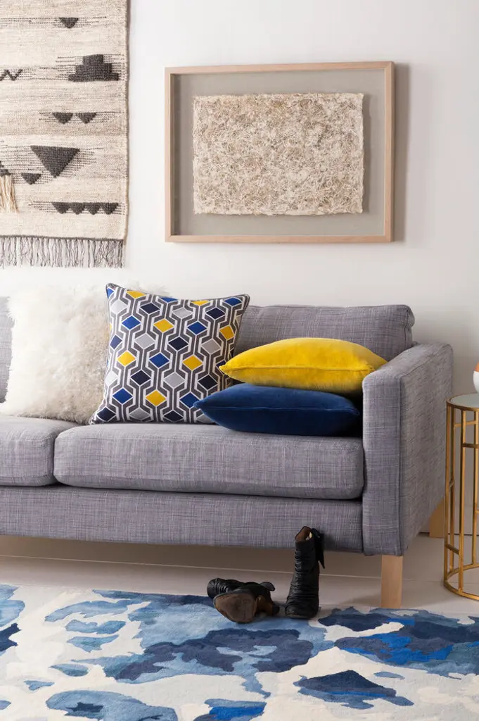 Inga 18 X 18 Inch Light Gray/medium Gray/navy/bright Yellow Pillow Kit, Square
