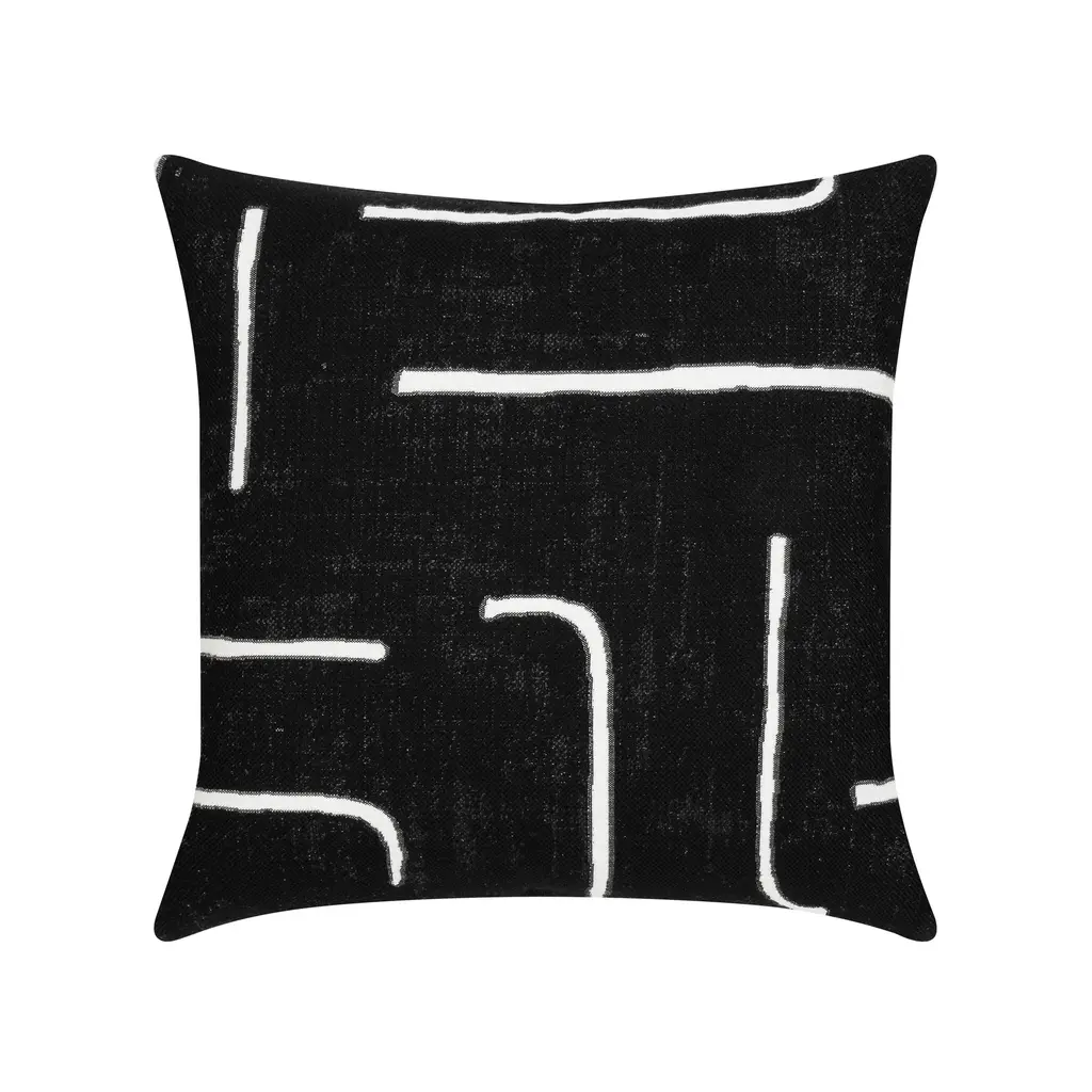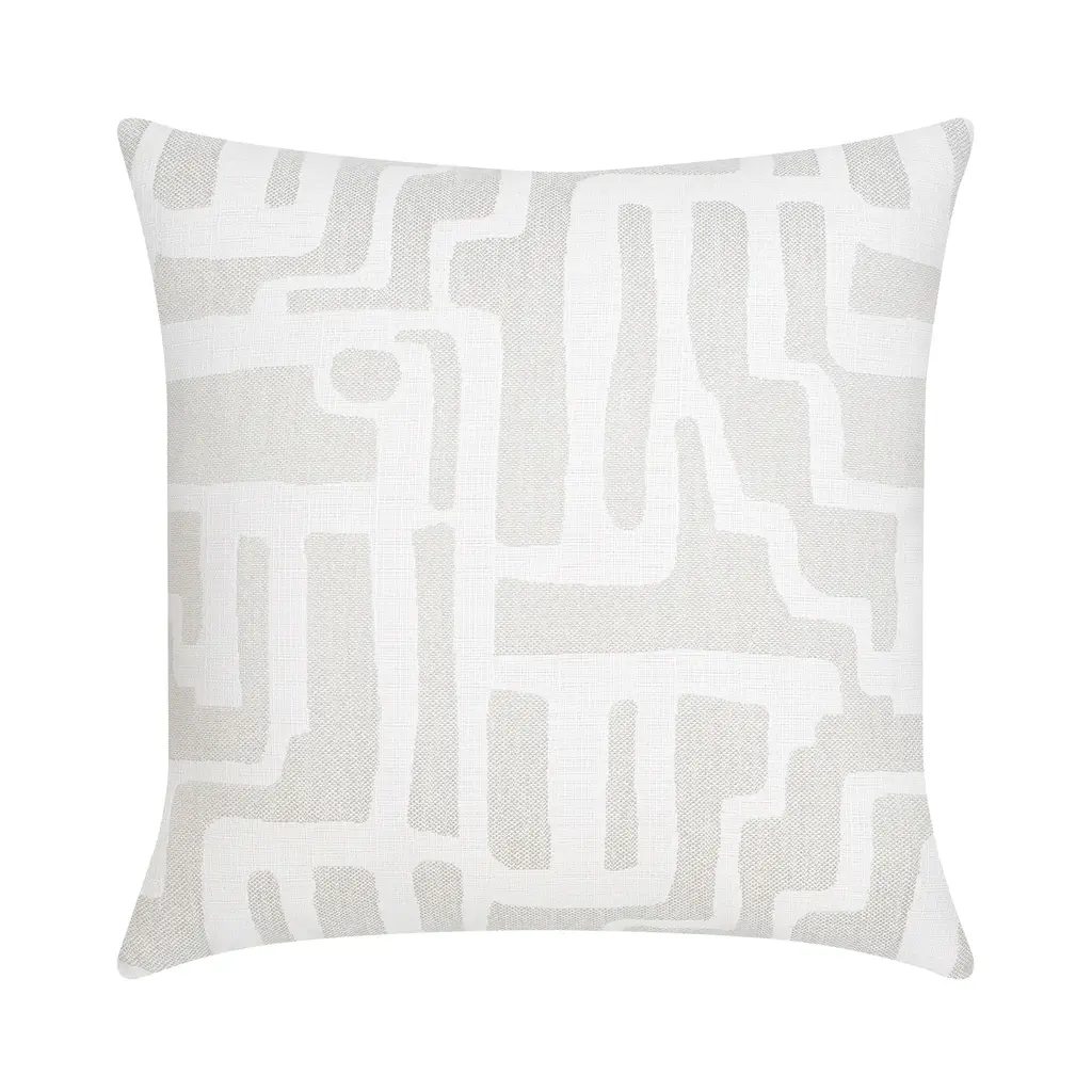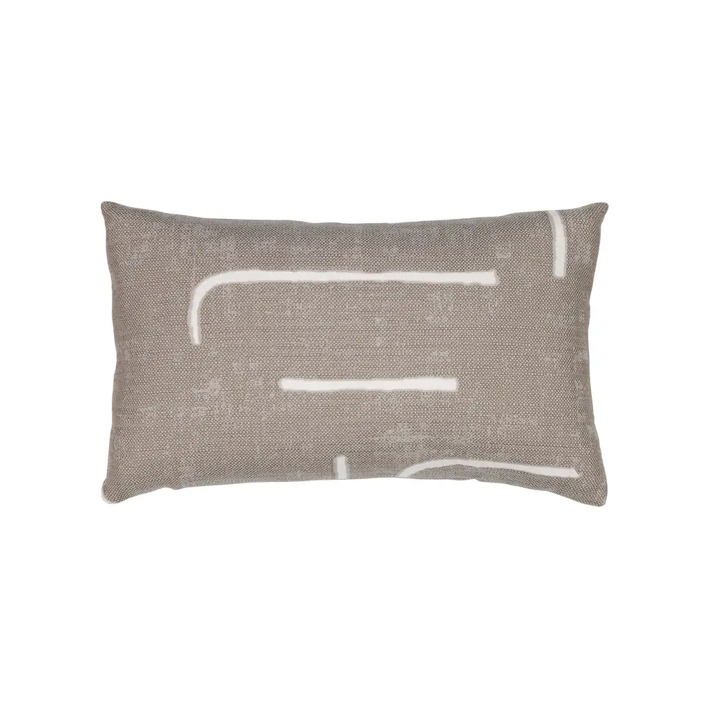 Soft, monochromatic yarns are expertly woven to give the appearance of a weathered fabric, and minimalist-inspired strips of white gently curve over the surface, providing calming energy and balance. Features