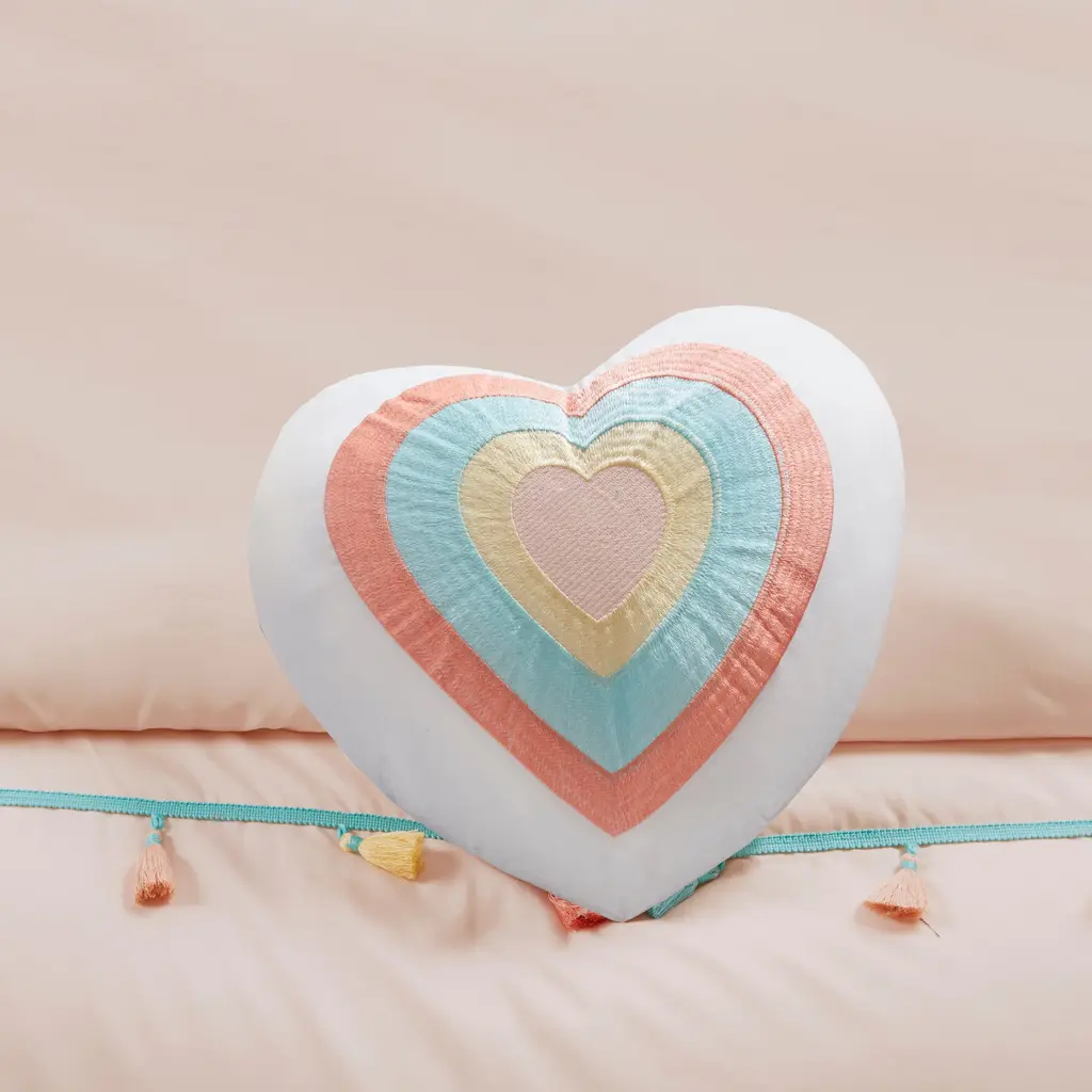 Intelligent Design Kids Tanya Tassel Comforter Set With Heart Shaped Throw Pillow - Blush - Full - Queen