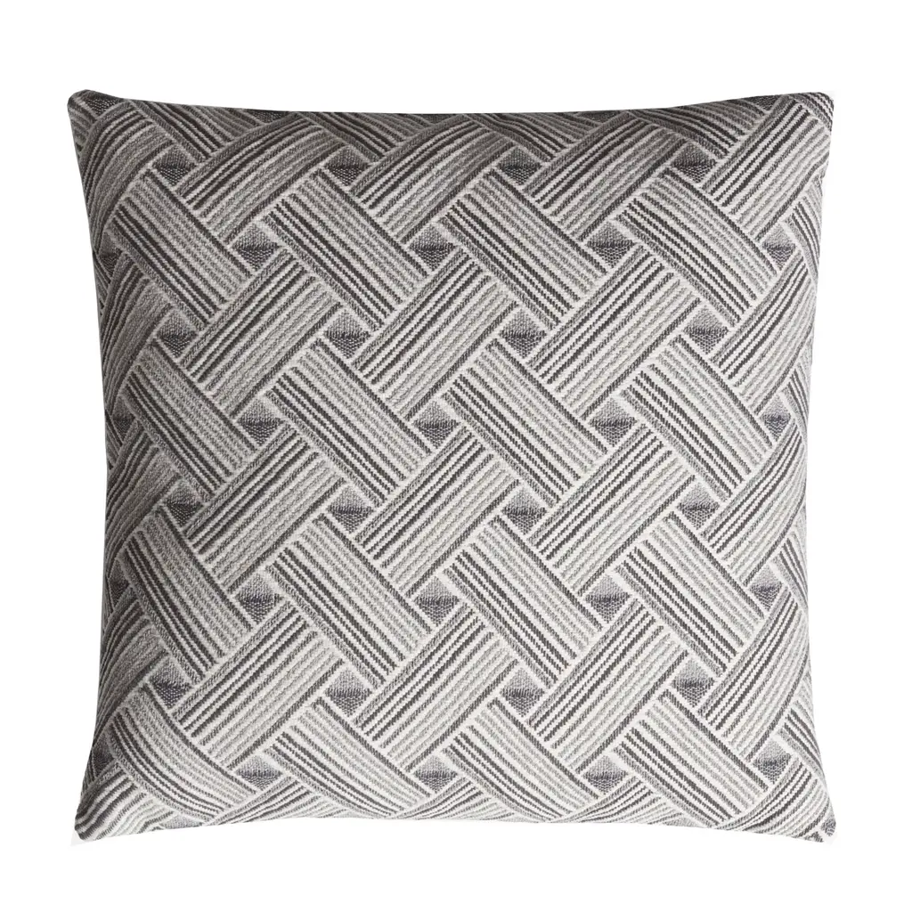 Woven entirely from outdoor-safe yarns, the Intertwine pillow is a sophisticated blend of neutral tones woven into a luxurious basketweave design. Features