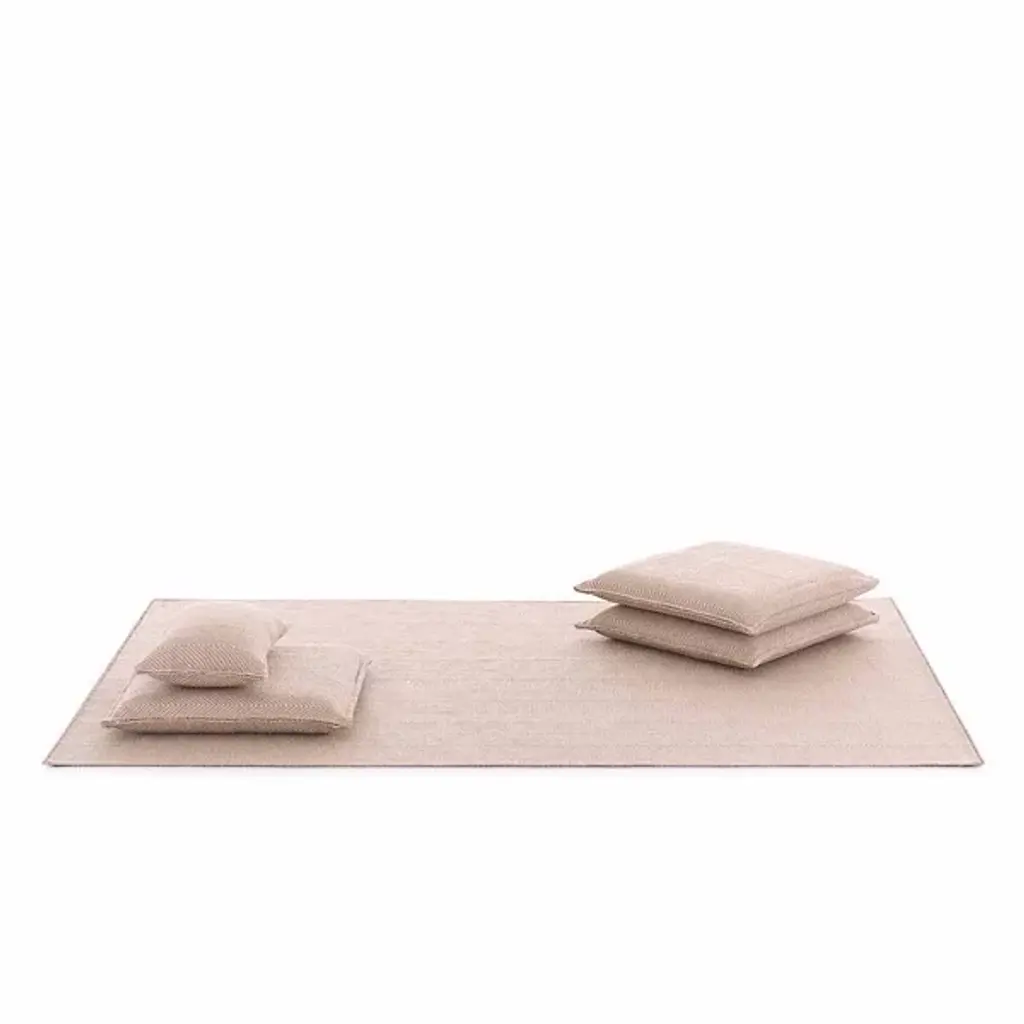 The Inuit Outdoor Rectangular Pillow from Gan Rugs extends the collection's modular approach through hand-loom construction and recycled PET materials. The rectangular shape provides different support angles compared to square versions within the same line. Multiple pillows are arranged horizontally for reclining or stacked vertically for height adjustments. This format provides flexibility in arranging floor-based seating configurations throughout the collection.