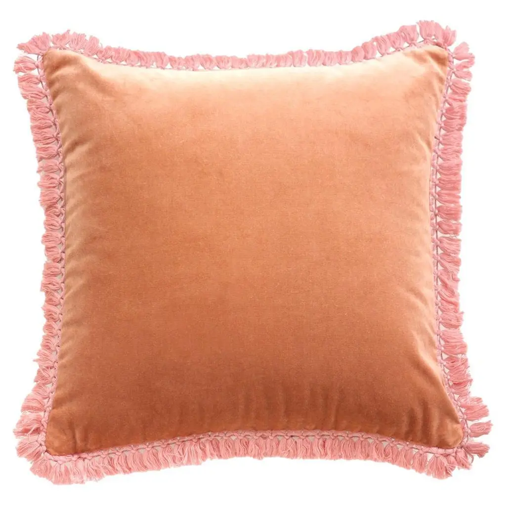 Iris Brown Velvet Deluxe Fringed Decorative Cushion