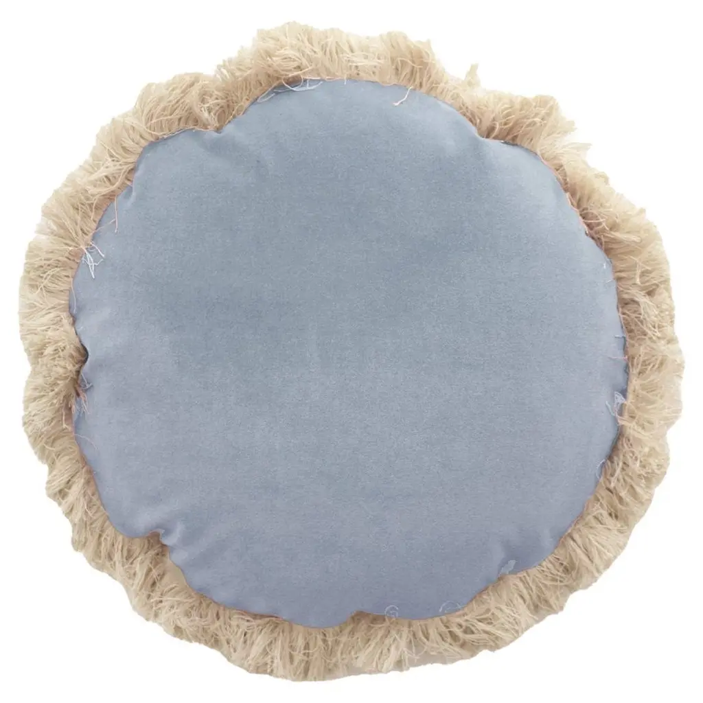 Iris Round Blue Velvet Deluxe Fringed Decorative Cushion