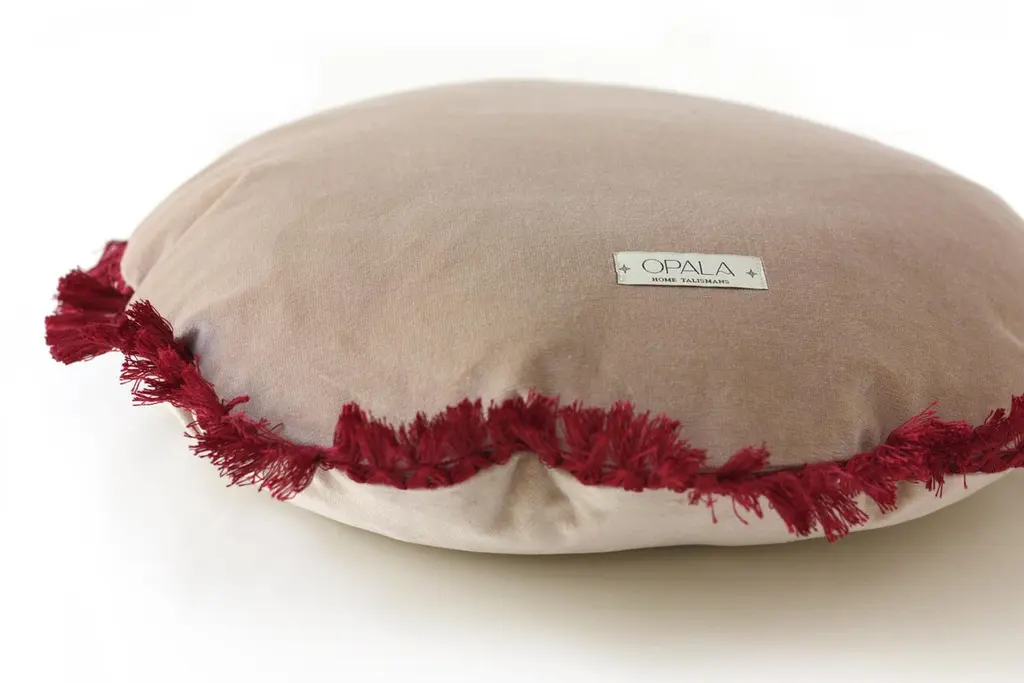 A talisman for the home of beauty, good energies and comfort. This decorative pillow is ethically produced by small family run business, handmade by skilled portuguese artisans with top quality cotton velvet. Each piece is unique and made especially for you.Designed to make your world a happy place to live.---Size: ø45 cmbottom invisible zipper.Composition:Cotton velvetCare:Dry clean only.Anti-allergic cushion pad/filler optionalHand tailored in Portugal.as an handmade product, small variations may occur.