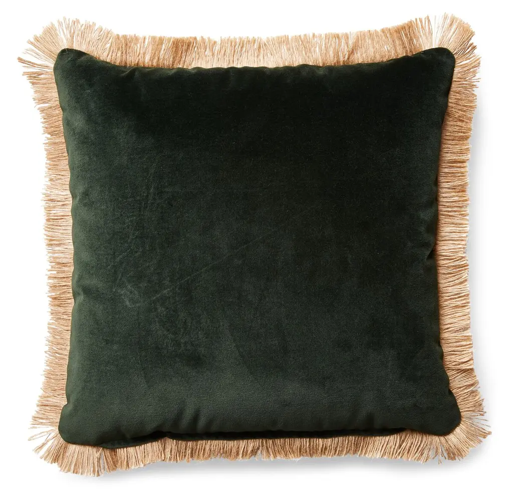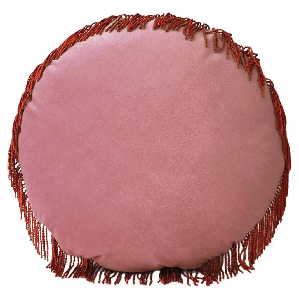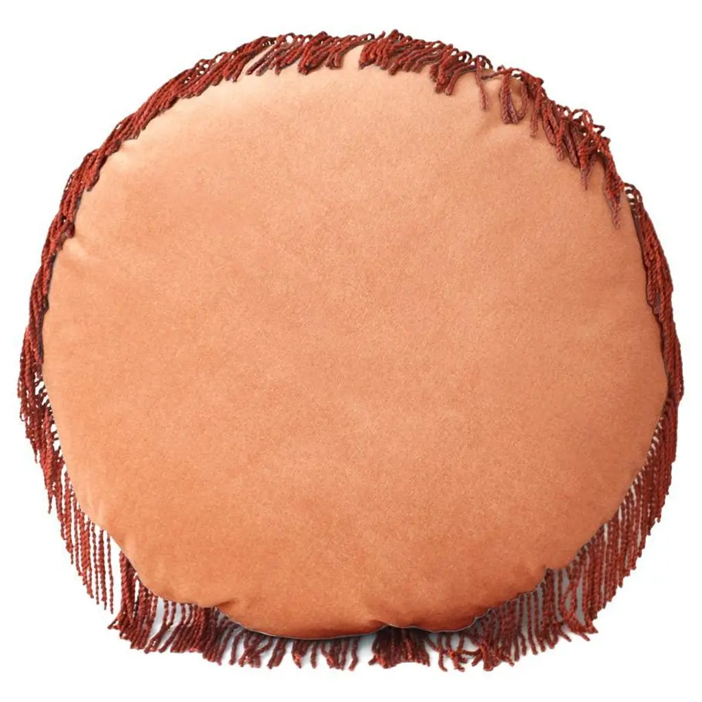 Iris Round Dry Green Velvet Deluxe Fringed Decorative Cushion