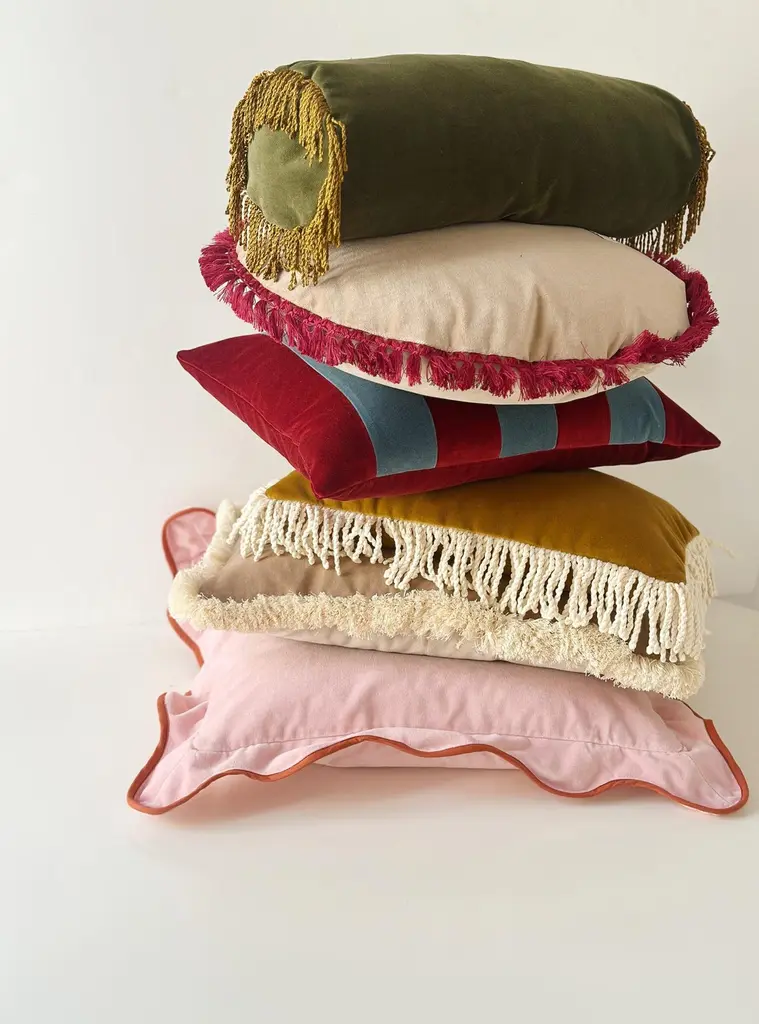 Iris Round Pink Velvet Deluxe Fringed Decorative Cushion