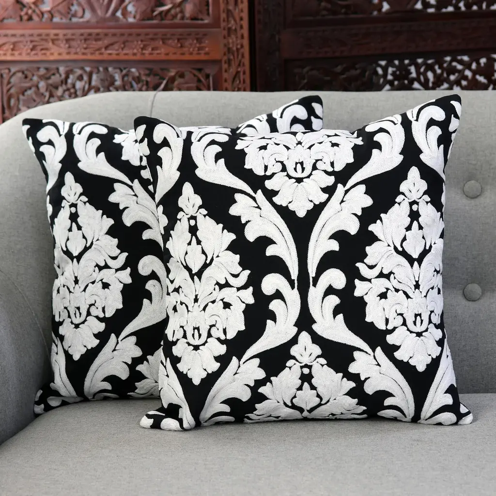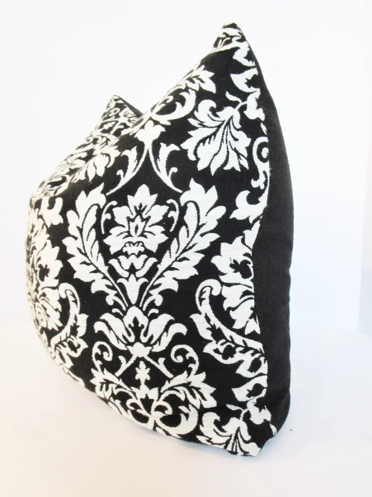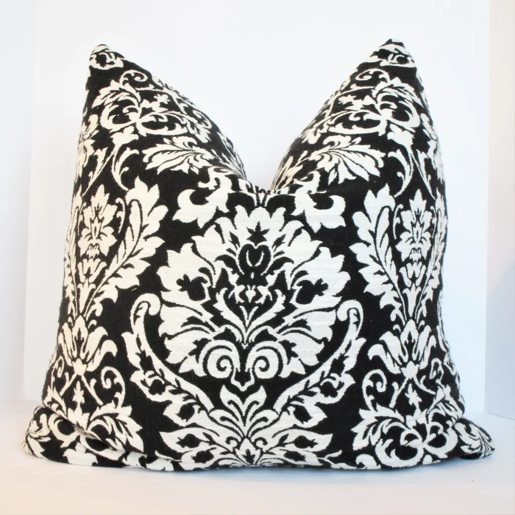 Italian "Armani" Black/white Damask Pillow 22" Square, Feather Down Insert