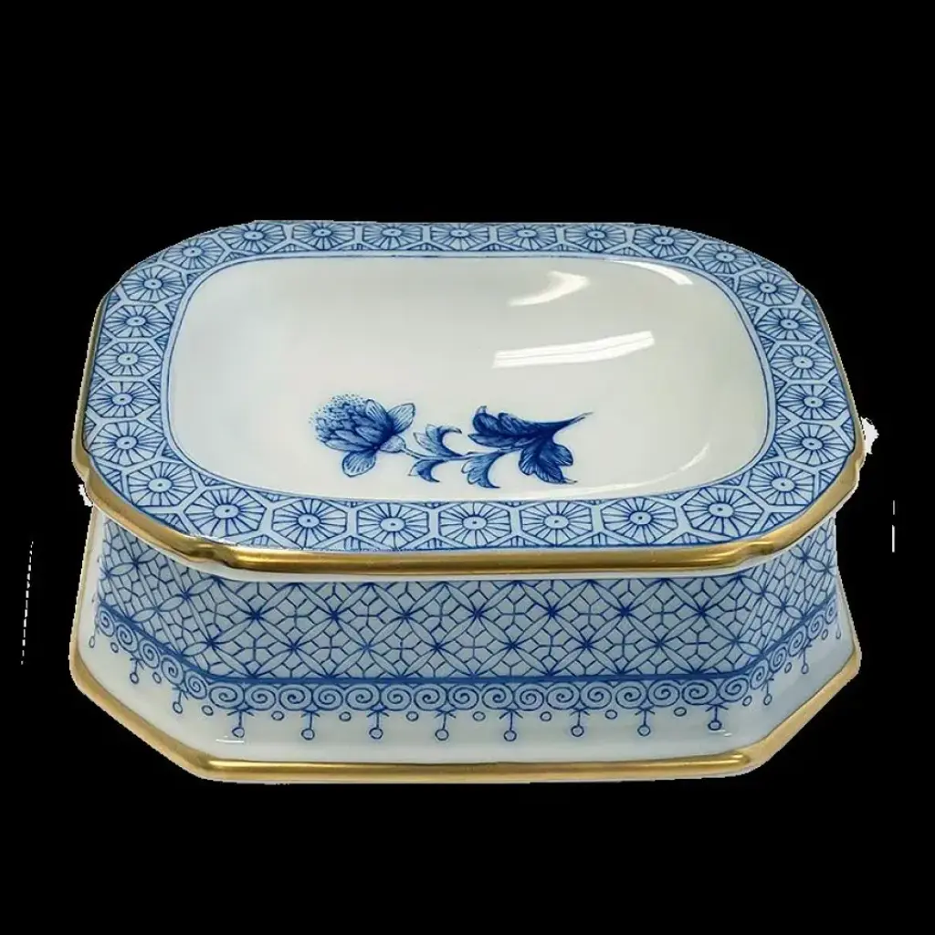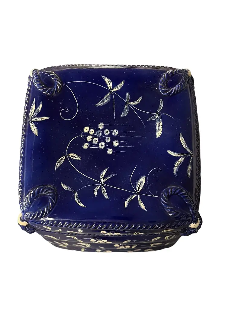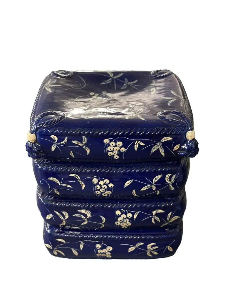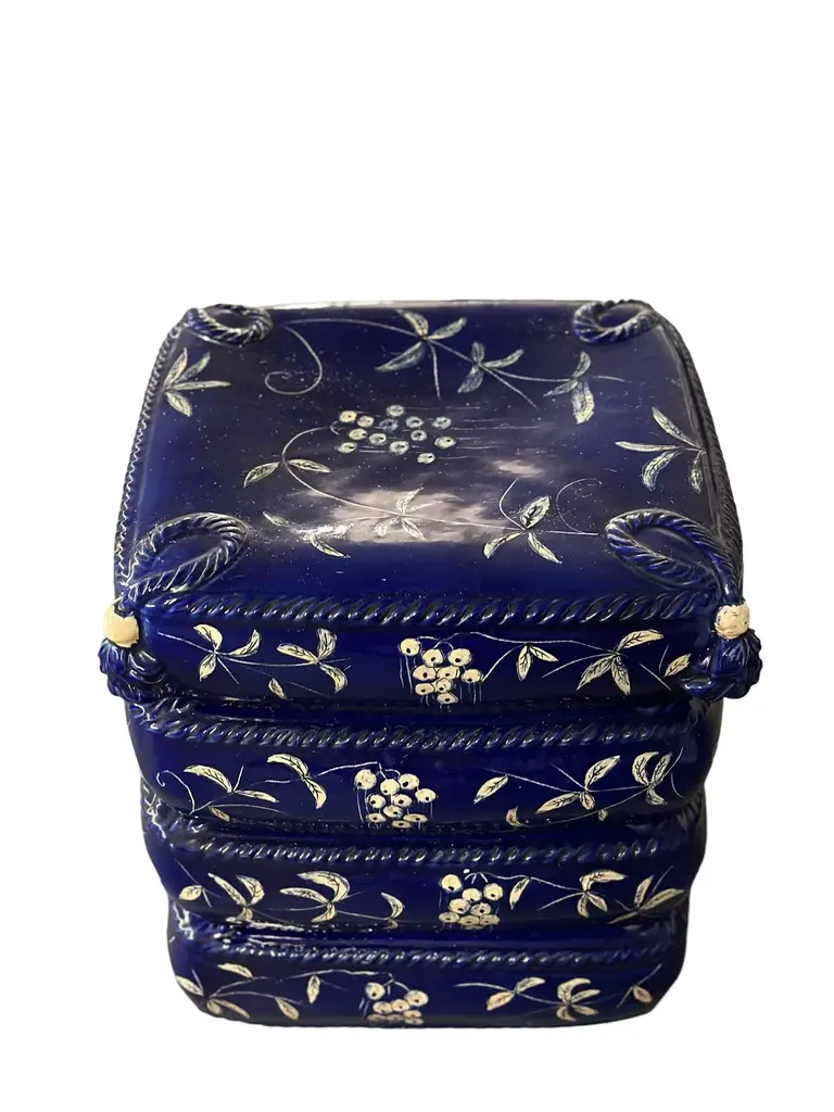 Italian Ceramic Pillow Stack Stool Or Garden Seat In Ink Blue Leaves Design