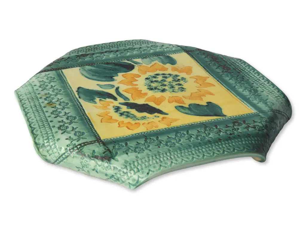A classic Italian ceramic “cushion” flowers and leaves design garden seat. Extra seating or a side table makes this an elegant addition to your home . Hand painted and hand crafted in Italy.