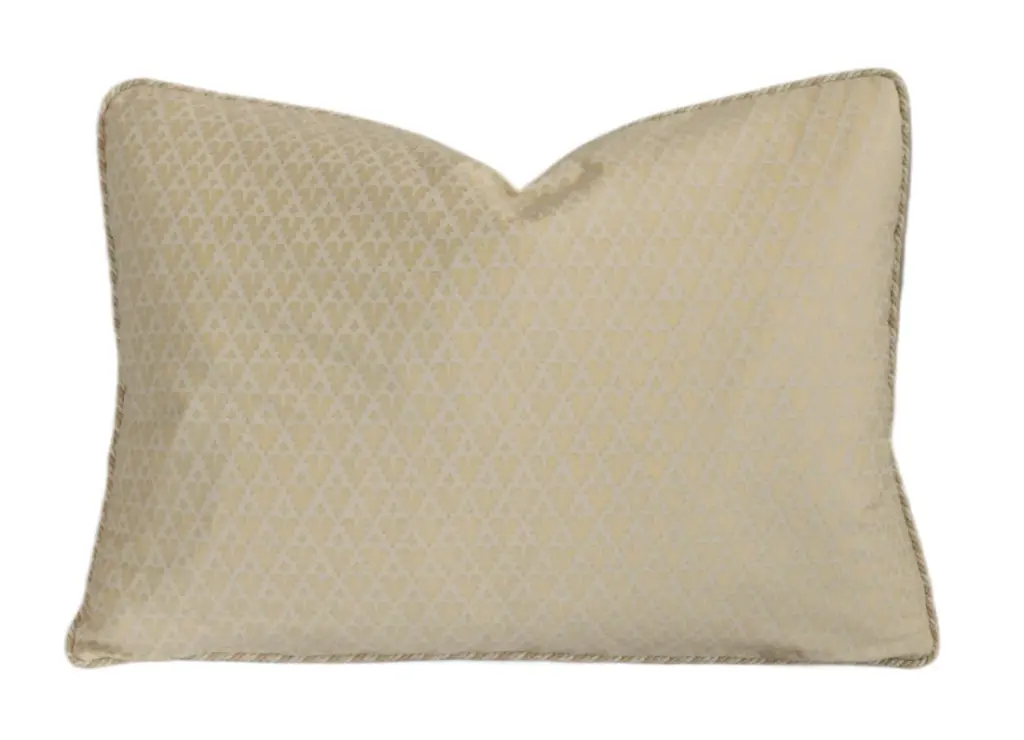 Custom-tailored pillow in Italian designer Mariano Fortuny's cotton fabric called "Murillo" in a beautiful yellow/straw and white colorway. The design was inspired by the Spanish Baroque painter Bartolome Esteban Murillo. The pillow reverse is the same Fortuny fabric. Samuel & Sons trim. Zipper closure. Plump, generous goose feather-and-down insert. Excellent new, unused condition!! ***PLEASE NOTE: I will combine shipping whenever possible if you purchase multiple items from my shop. Warm regards, Mike Seratt ***Also don't forget to take a peek at my other current listings...you just might find something you can't live without!!! It's easy just click on my name to the right of any listing highlighted in black "Mike Seratt of The Prized Pig" and presto it will bring you to my storefront!!! Cheers!!! Mike Seratt I SHIP OUT IMMEDIATELY, SO THE ESTIMATION YOU SEE FOR THE DELIVERY TIMELINE IS CHAIRISH'S OVERALL GENERAL TIMELINE, BUT I WILL GET THIS OUT THE NEXT DAY AND DELIVERY IS USUALLY 5-7 DAYS AT MOST!!!
