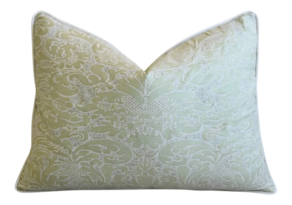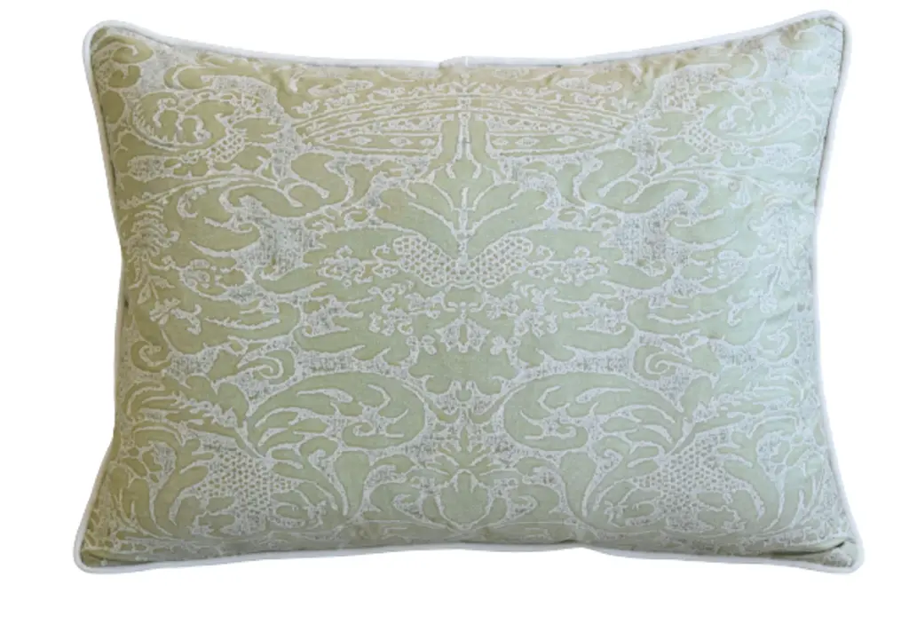 Italian Mariano Fortuny Moss-Green & Off-White Corone Feather/down Pillow 24" X 18"