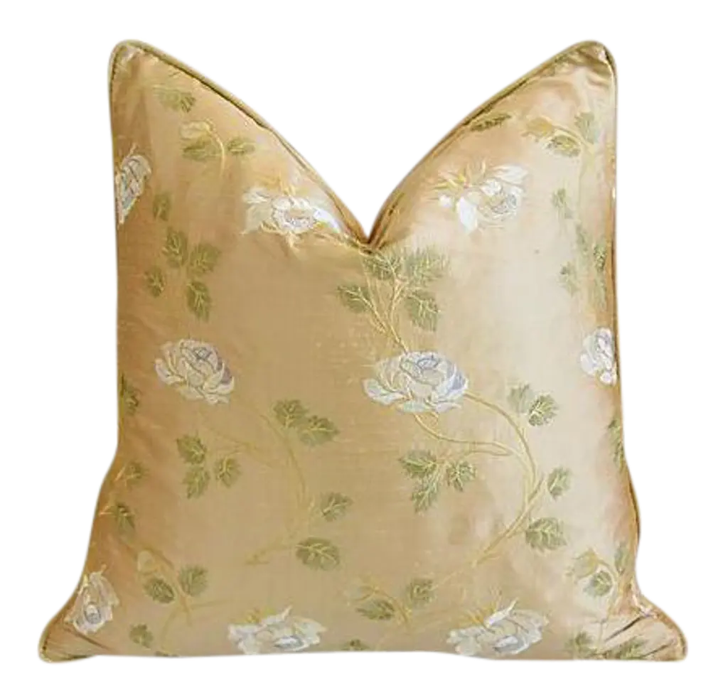 Custom-tailored pillow in Italian Mariano Fortuny cotton fabric called "Vivaldi" with a rich floral design in a Rembrandt rust, straw, and silvery-gold colorway. The pattern was inspired by an 18th Century Italian Design, named for the famous Venetian Composer-Violinist, Vivaldi. Complementy cotton-velvet back. Custom trim. Zipper closure. Generous plump feather/down insert. All pillows in this listing have the identical pattern placement on the front. Excellent new unused condition!! ***I will combine shipping whenever possible if you purchase multiple items from my shop. ***Also, don't forget to take a peek at my other current listings...you just might find something you can't live without!!! It's easy. Just click on my name to the right of any listing highlighted in black, "Mike Seratt of The Prized Pig," and presto, it will bring you to my storefront!!! Cheers!!! Mike Seratt I SHIP OUT IMMEDIATELY, SO THE ESTIMATION YOU SEE FOR THE DELIVERY TIMELINE IS CHAIRISH'S OVERALL GENERAL TIMELINE, BUT I WILL GET THIS OUT THE NEXT DAY AND DELIVERY IS USUALLY 5-7 DAYS AT MOST