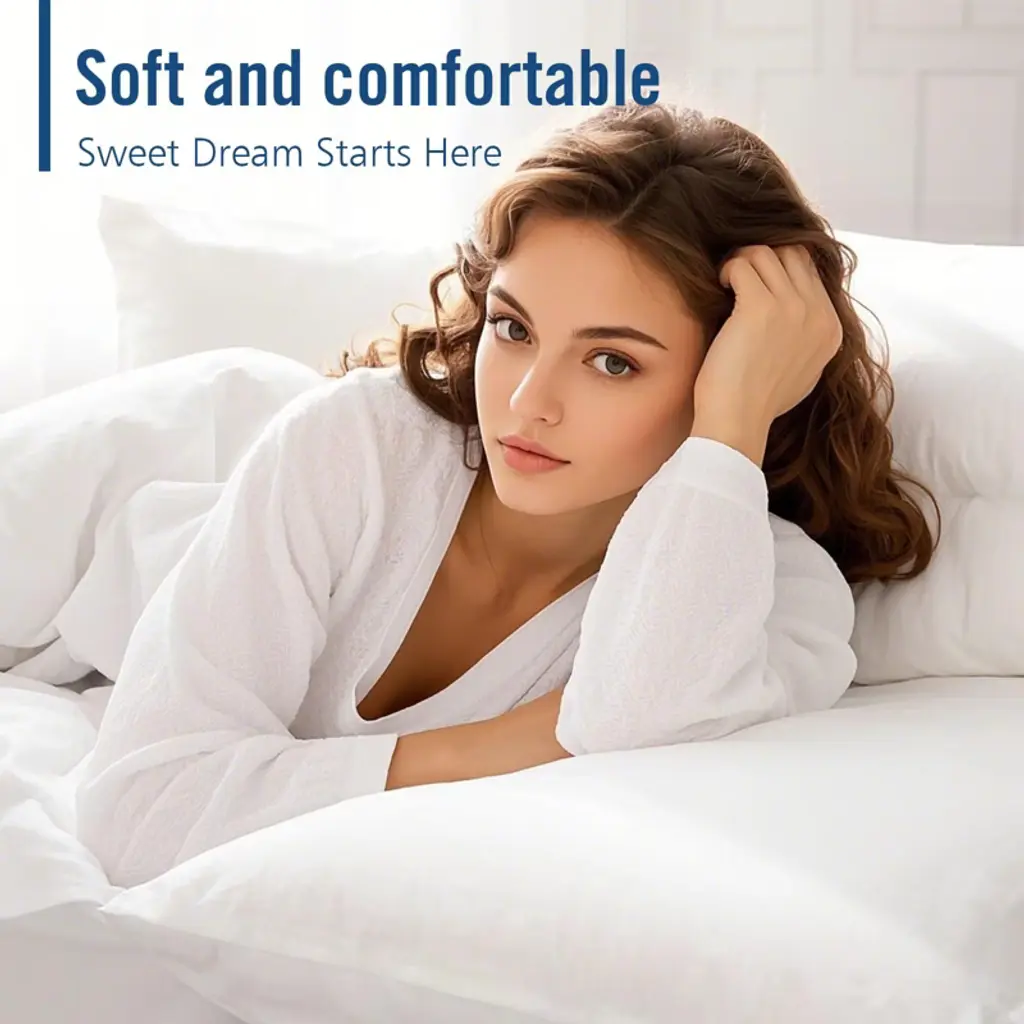 Indulge in a luxurious sleep experience with our 2 - pack of bed pillows. The pillow shell is made of 100% polyester fabric, which is soft, breathable, and skin - friendly. The filling is 100% polyester microfiber, offering excellent resilience and uniform support for your neck and head, effectively alleviating shoulder pain. These pillows are suitable for all sleep positions, whether you're a side, back, or stomach sleeper. They are simple, stylish, and durable, making them a perfect gift for loved ones. The pillows come vacuum - packed. Just gently tap them after opening and wait 24 hours for them to regain their fluffiness. Enjoy a hotel - like luxury every night at home with these comfortable pillows.