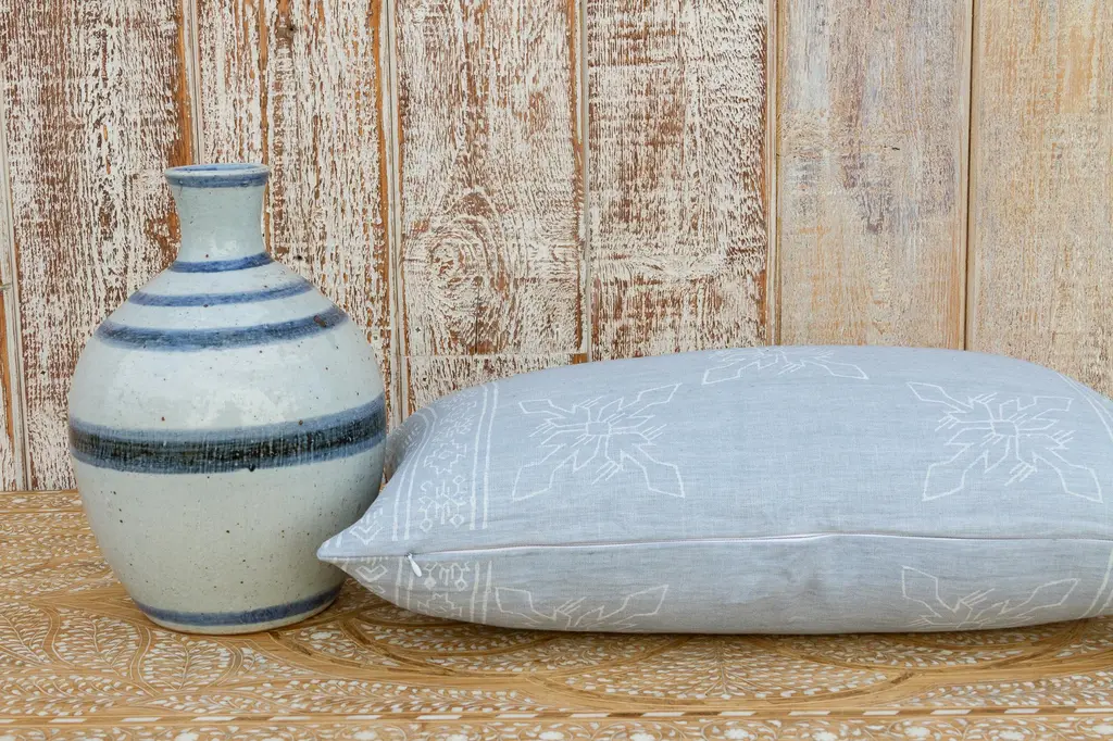 These pillows, inspired by ancient Aztec shield designs are hand block printed with vegetable dyes on 100% fine quality linen and enclosed with a hidden zipper. **Please bear in mind that colors of products shown may vary slightly from their original color due to monitor display settings or photography studio lighting.
