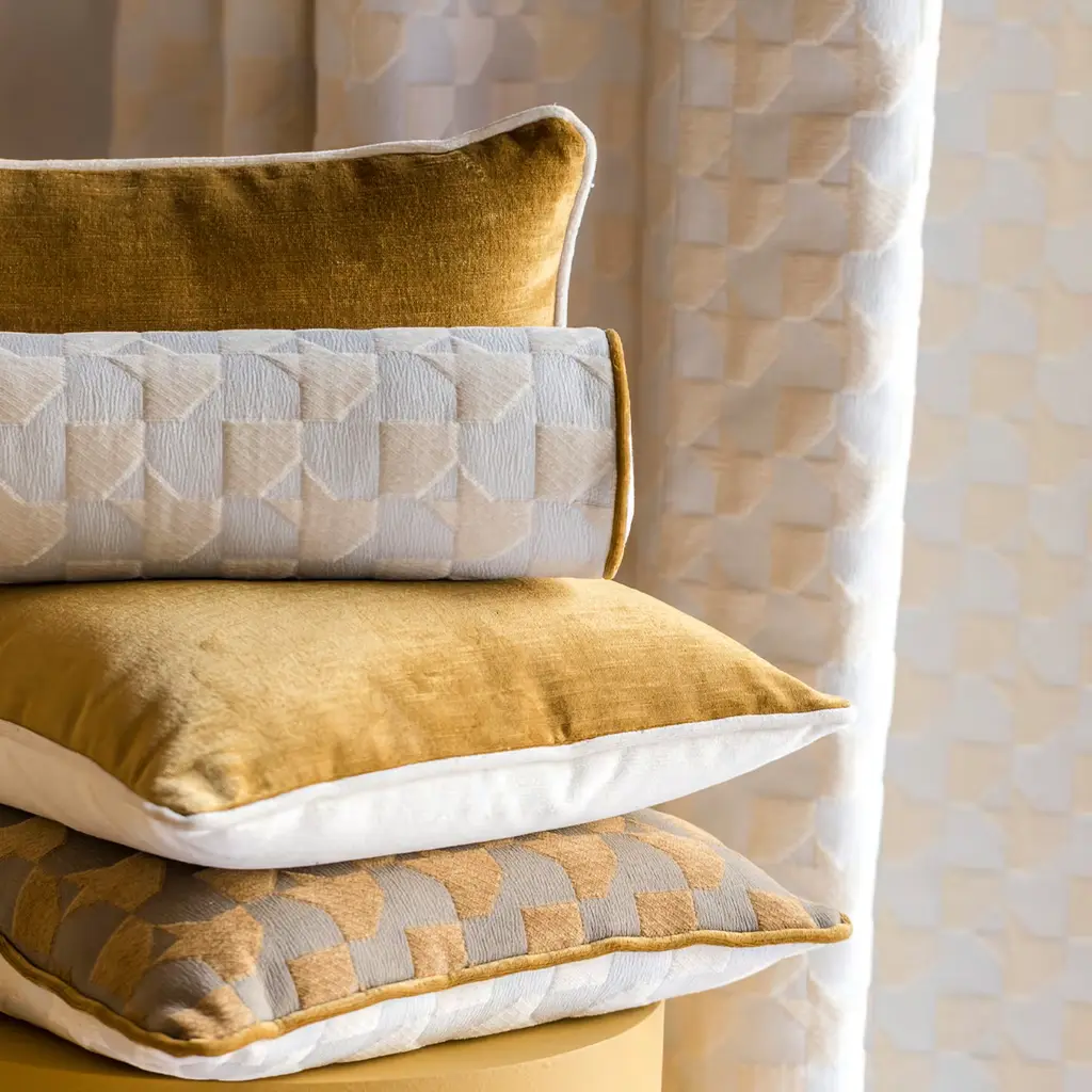 Ivory And Gold Linen Velvet Square Carrè Cushion