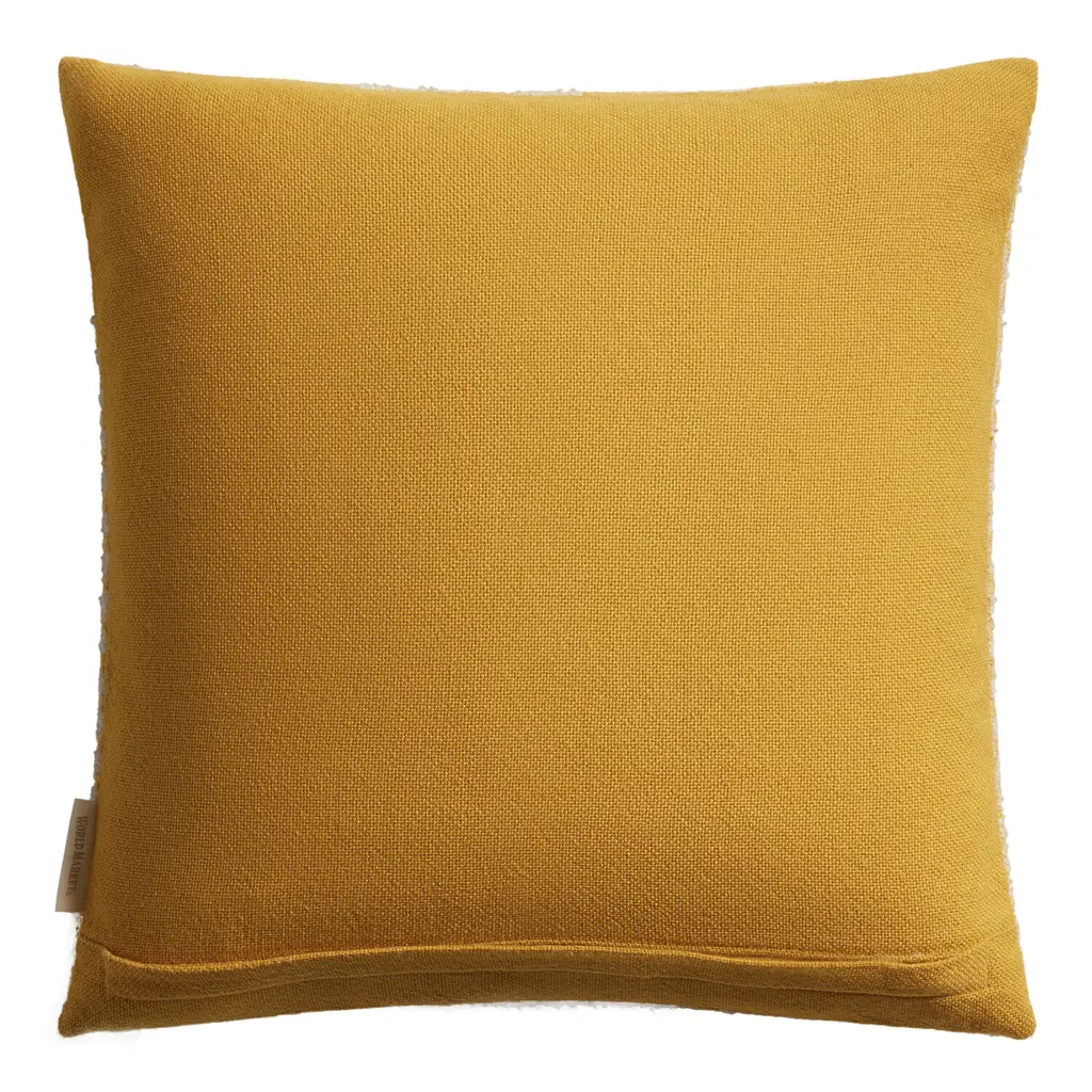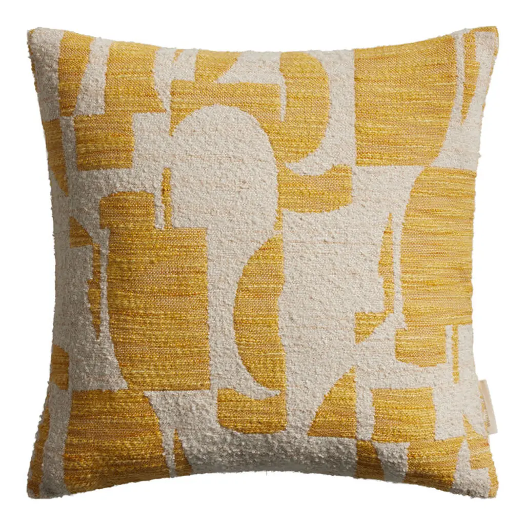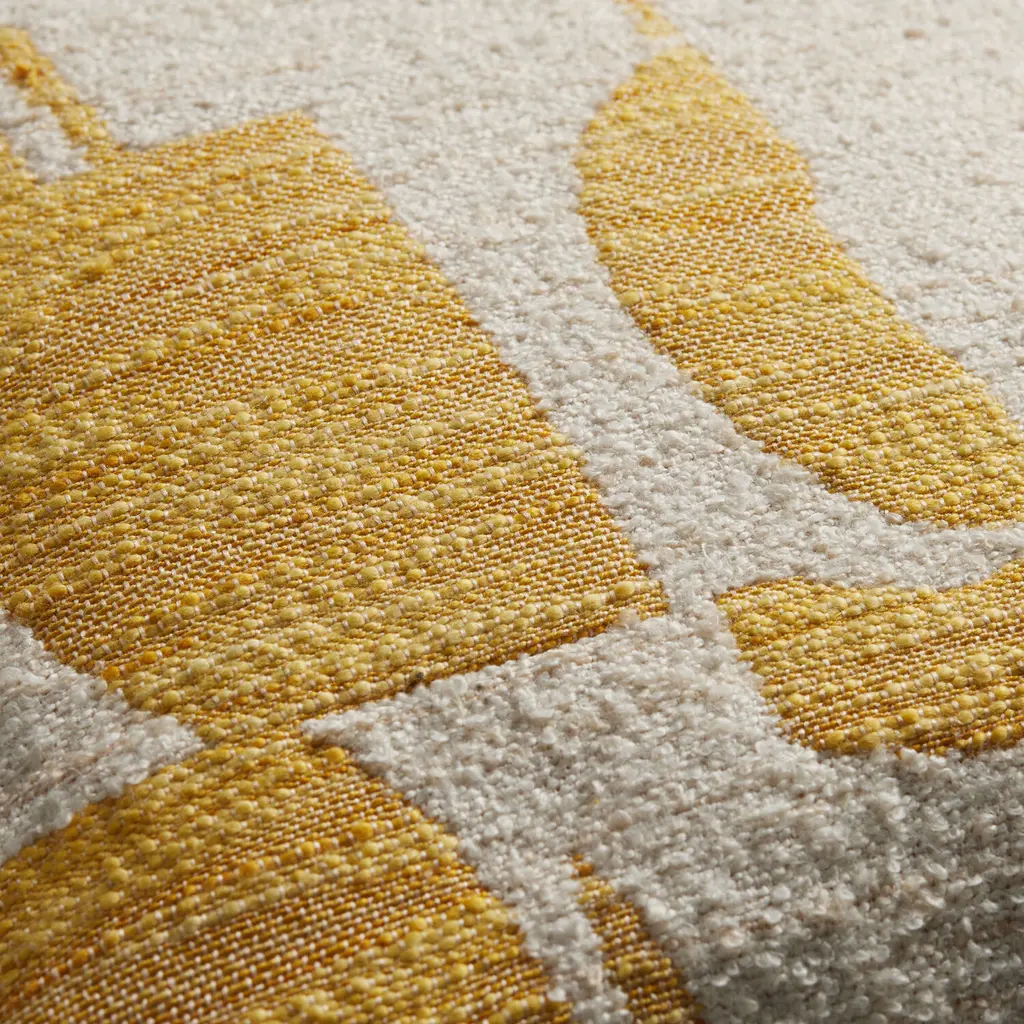 Featuring a warm and sunny color combination of ivory with golden yellow, our exclusive throw pillow showcases an abstract design reminiscent of mod, minimalist art. This jacquard toss pillow fits easily into existing pillowscapes, but it can easily be a standalone statement piece. Complete with a removable polyester insert, this toss pillow is a timeless piece that will have a spot in your decor for years to come.