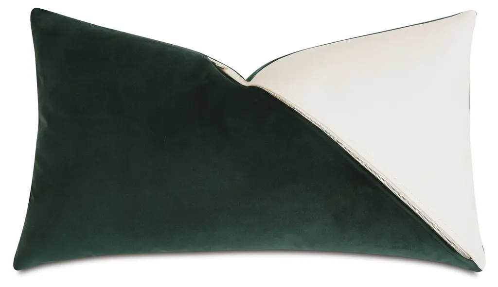Izaro Zipper Detail Right Pillow, Emerald/vanilla