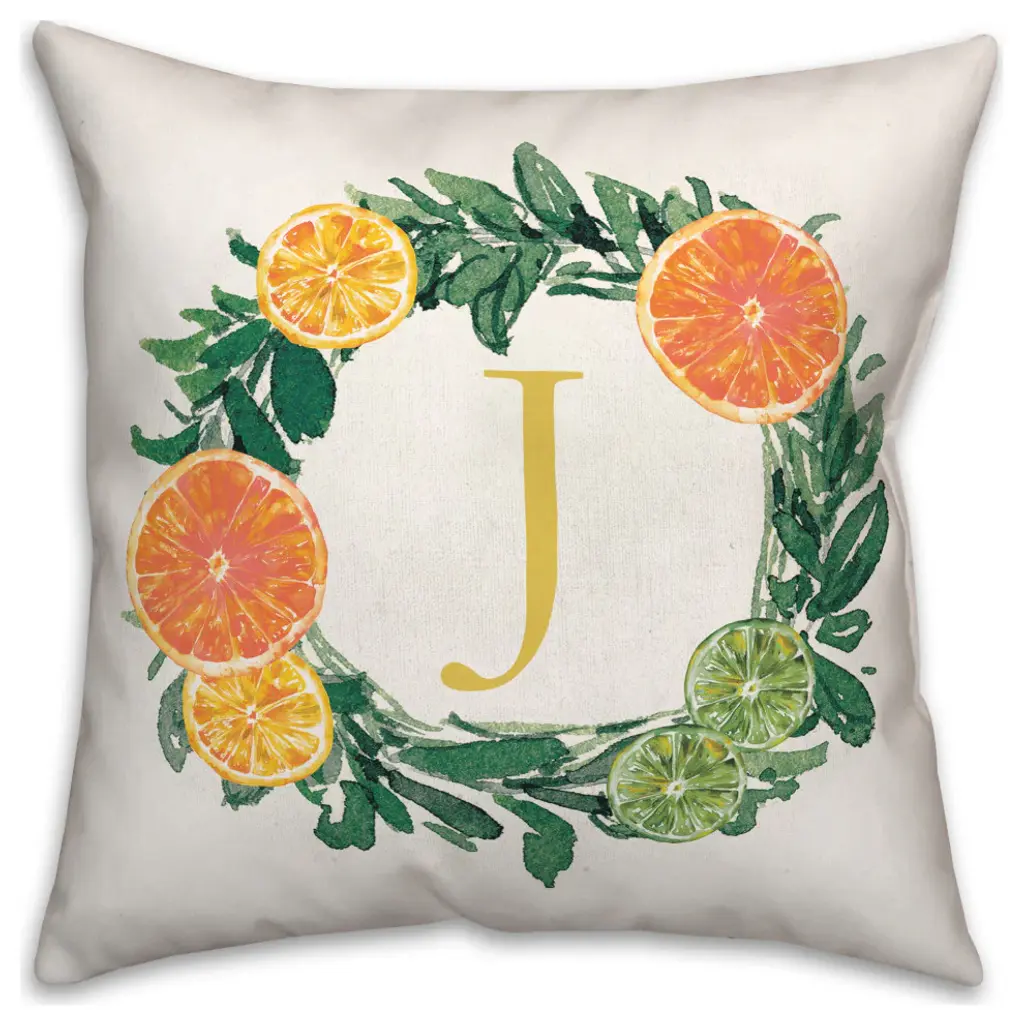 J Monogram Citrus 18x18 Indoor / Outdoor Pillow