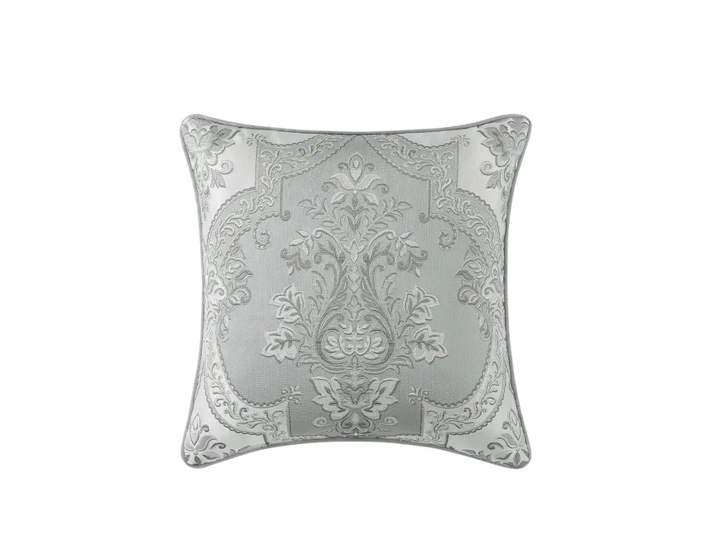 The 20 Inch Throw Pillow features a stunning woven damask design in a beautiful spa blue colorway. This lovely accent pillow is finished with a self-fabric cordage and was designed to coordinate with the Bedding collection.