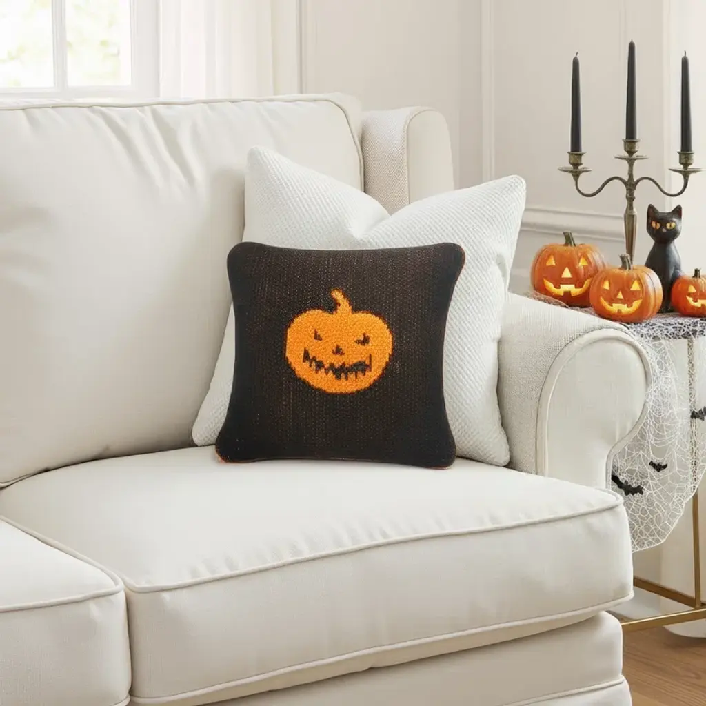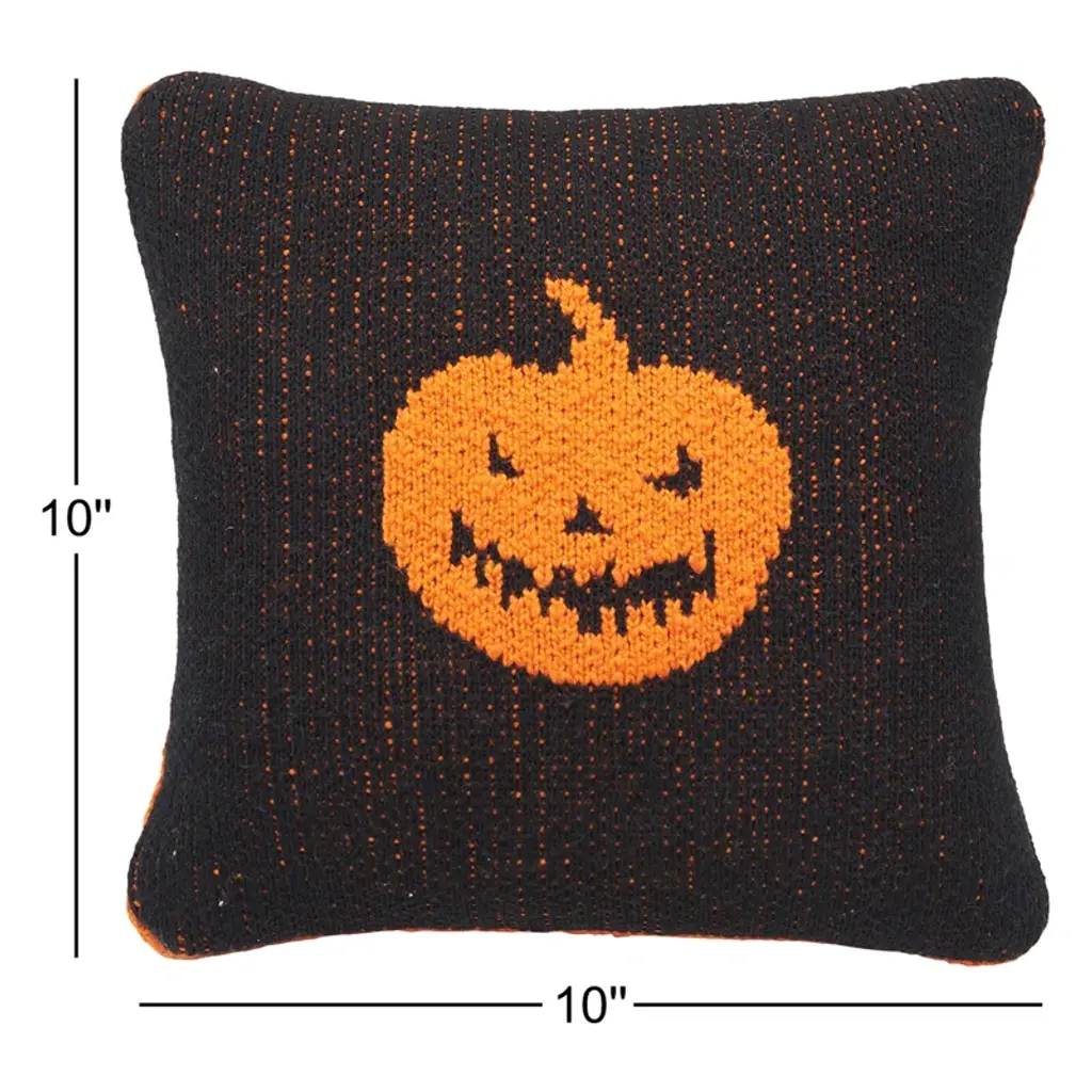 Get in the Halloween spirit this fall with this reversible knit pillow. This mini pillow is perfect for gifting and will fit in any home decor style just in time for spooky season.