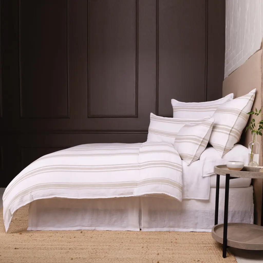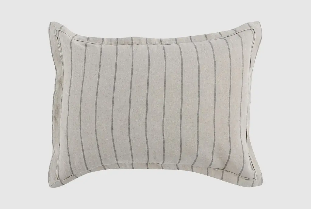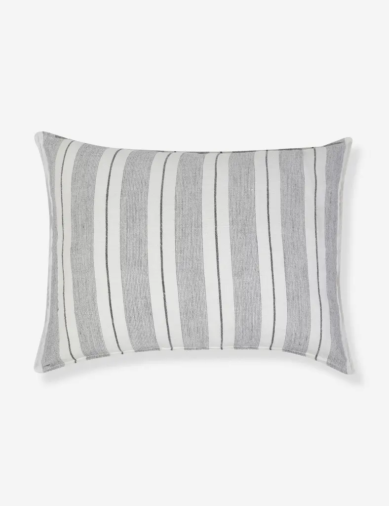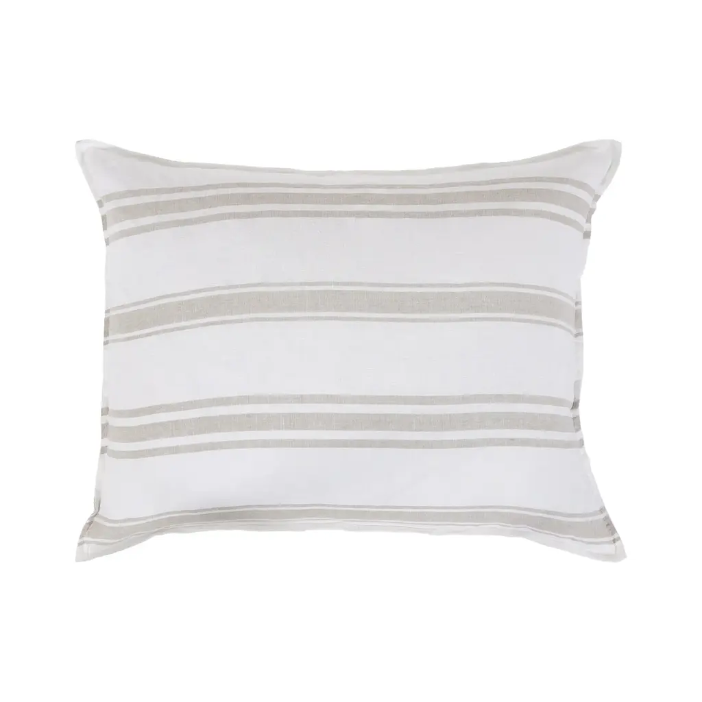 The Jackson Big Pillow With Insert from Pom Pom At Home offers a casual yet sophisticated touch to any room. The soft and elegant 100% linen material is adorned with subtle grey stripes on a crisp white background, creating a fresh and timeless look. Complete with delicate shell button closures, this pillow is the perfect addition to elevate any living space. Highlights