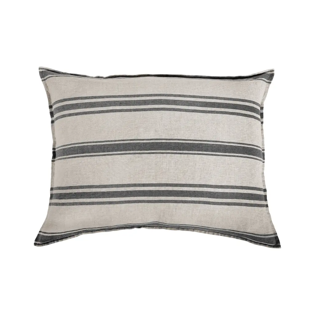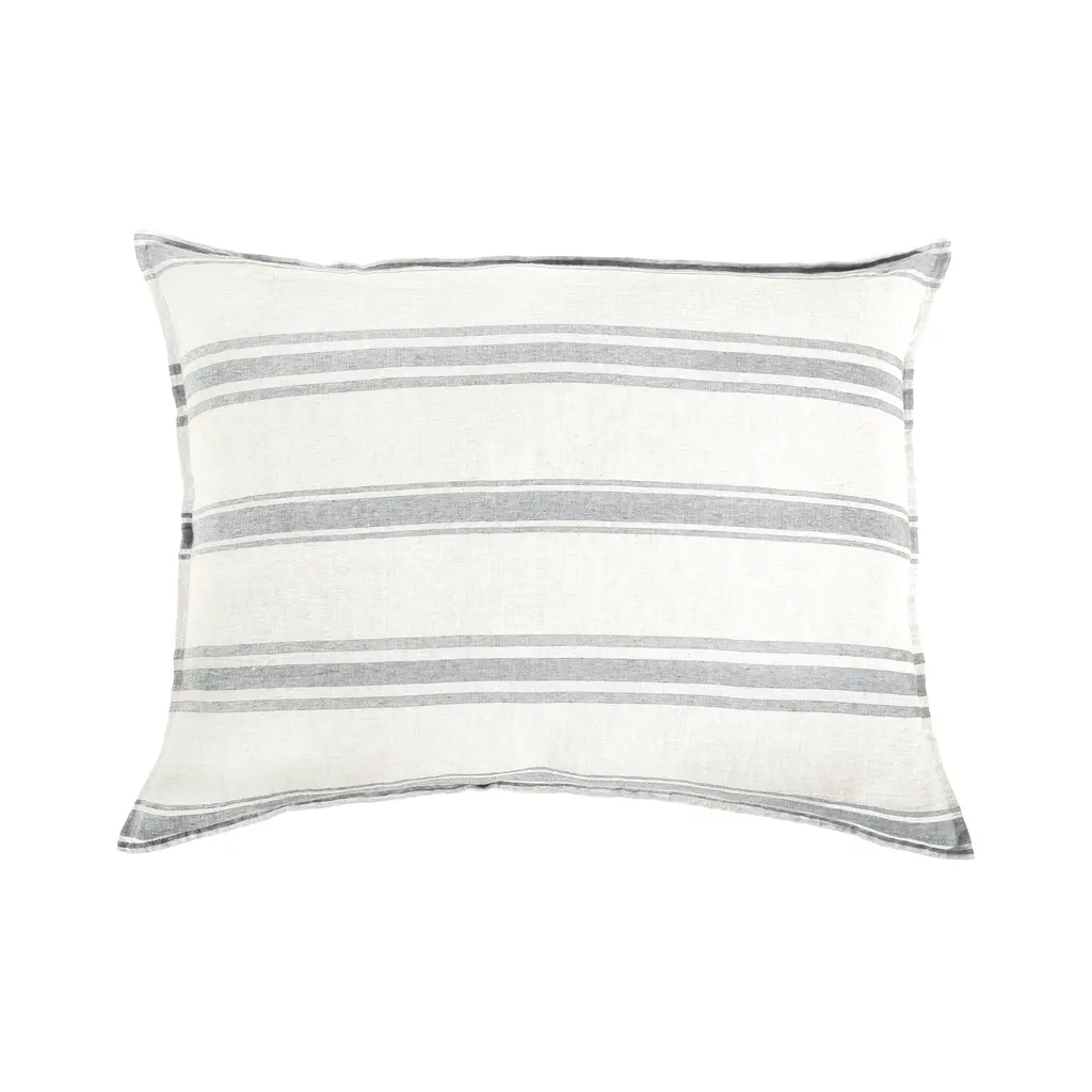 The Jackson Big Pillow With Insert from Pom Pom At Home offers a casual yet sophisticated touch to any room. The soft and elegant 100% linen material is adorned with subtle grey stripes on a crisp white background, creating a fresh and timeless look. Complete with delicate shell button closures, this pillow is the perfect addition to elevate any living space. Highlights
