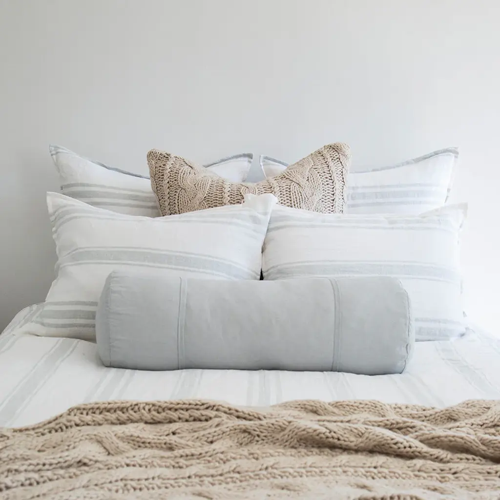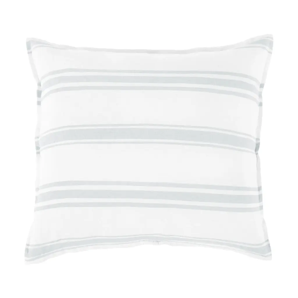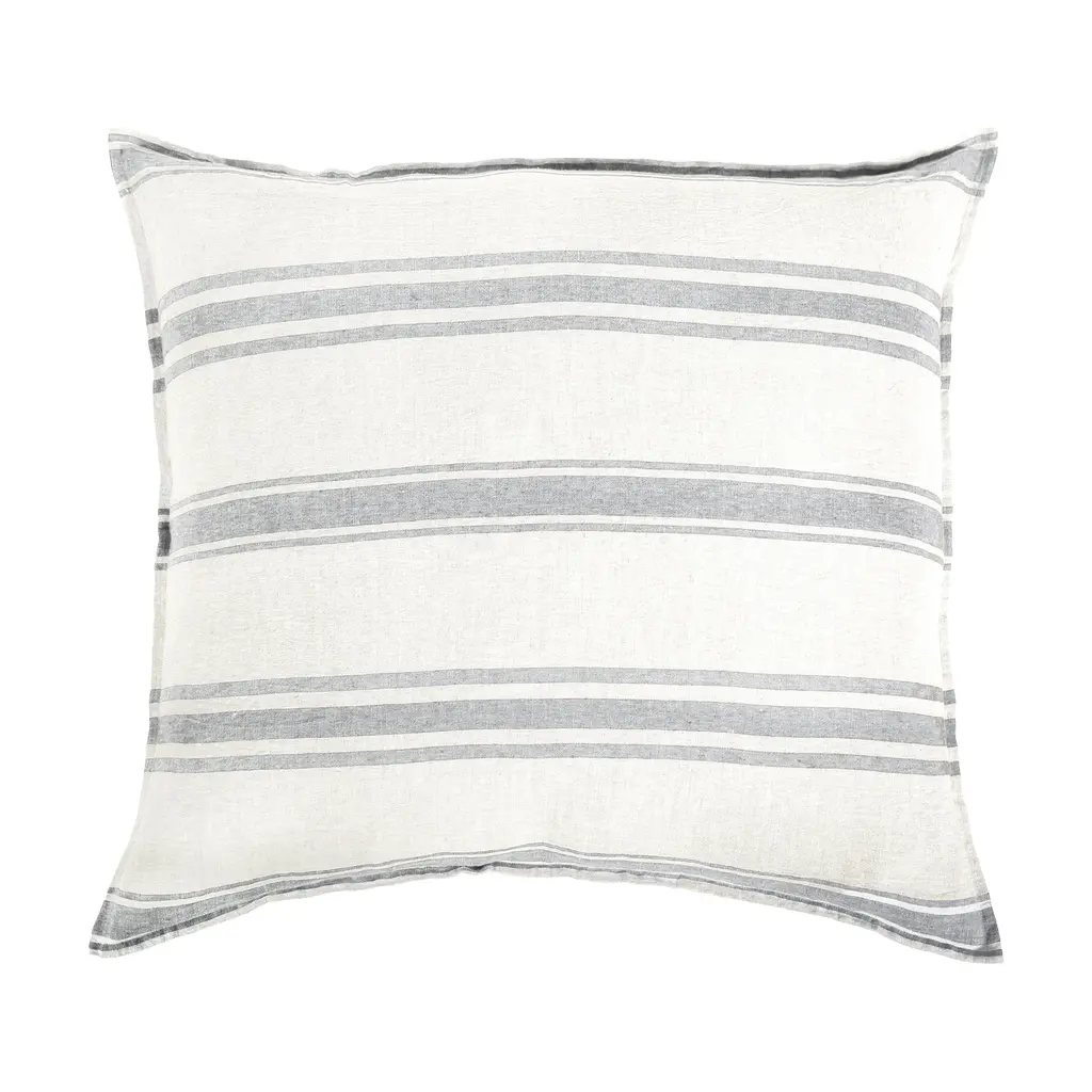 The Jackson Big Pillow With Insert from Pom Pom At Home offers a casual yet sophisticated touch to any room. The soft and elegant 100% linen material is adorned with subtle grey stripes on a crisp white background, creating a fresh and timeless look. Complete with delicate shell button closures, this pillow is the perfect addition to elevate any living space. Highlights