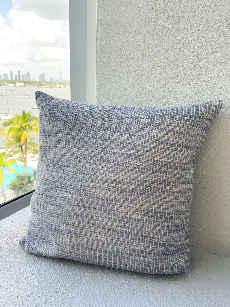 This one-of-a-kind throw pillow showcases a stunning indigo-dyed pattern, hand-crafted with fair trade practices. Made of soft, relaxed cotton, this Mabel Handmade Indoor Cotton Throw Pillow features a lightly thatched, denim-like design in a soft blue and white colorway for the perfect touch texture.