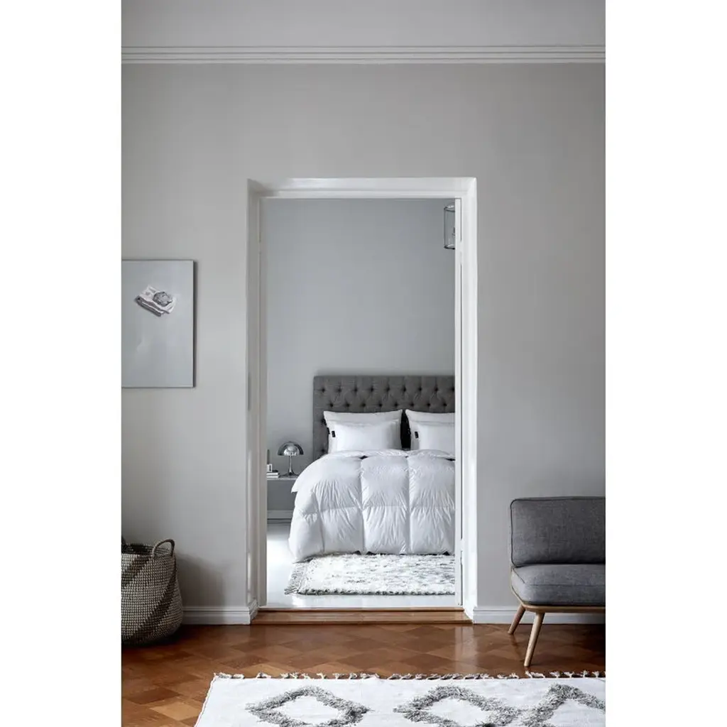 The Jalo down pillow by the Finnish brand Joutsen is the perfect choice for anyone who enjoys natural materials and an extra luxurious feel. Due to the pillow’s box structure, the breathable 100% down filling is evenly distributed, supporting the head and neck optimally. The fabric is a cotton batiste with a high thread count. The high Jalo pillow is best suited for those sleeping on the side. The down used in the Joutsen products is meticulously cleaned, dust-free and non-allergenic, and the products have been granted the Allergy Label by the Finnish Allergy, Skin and Asthma Federation. The Joutsen bedding is manufactured in Finland.