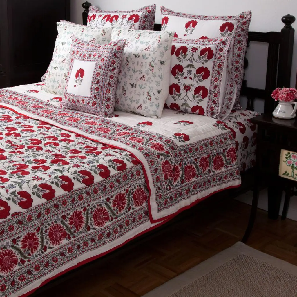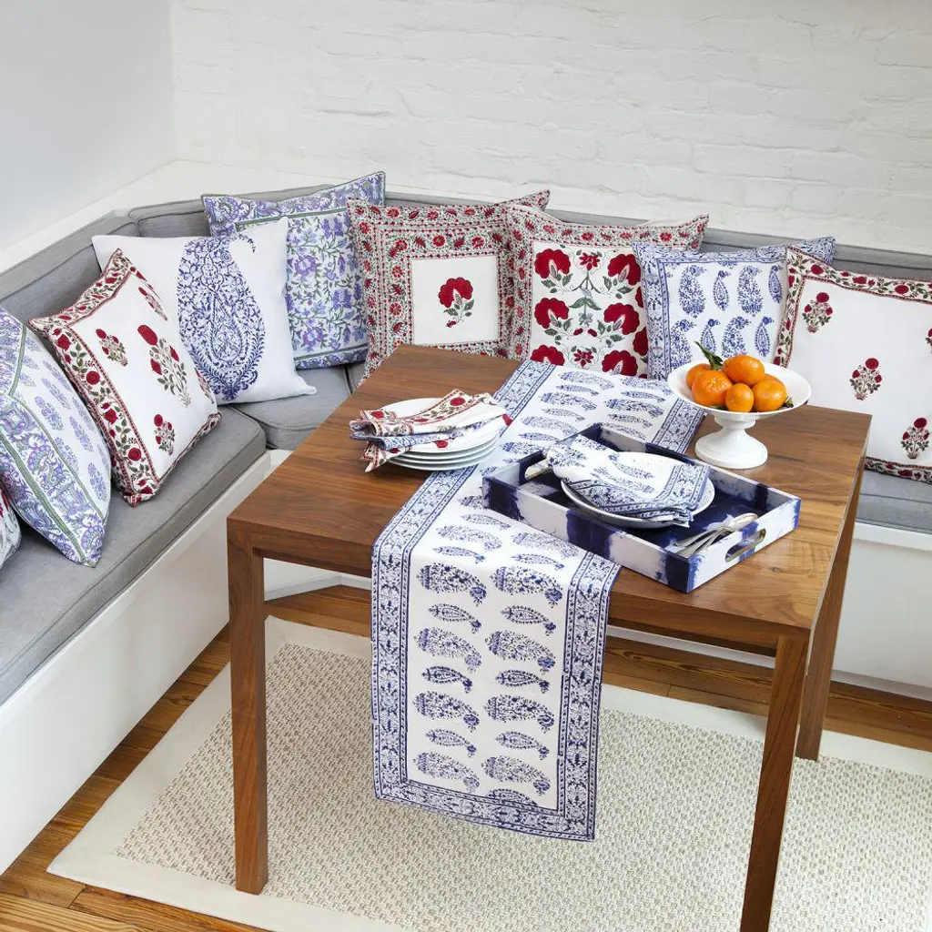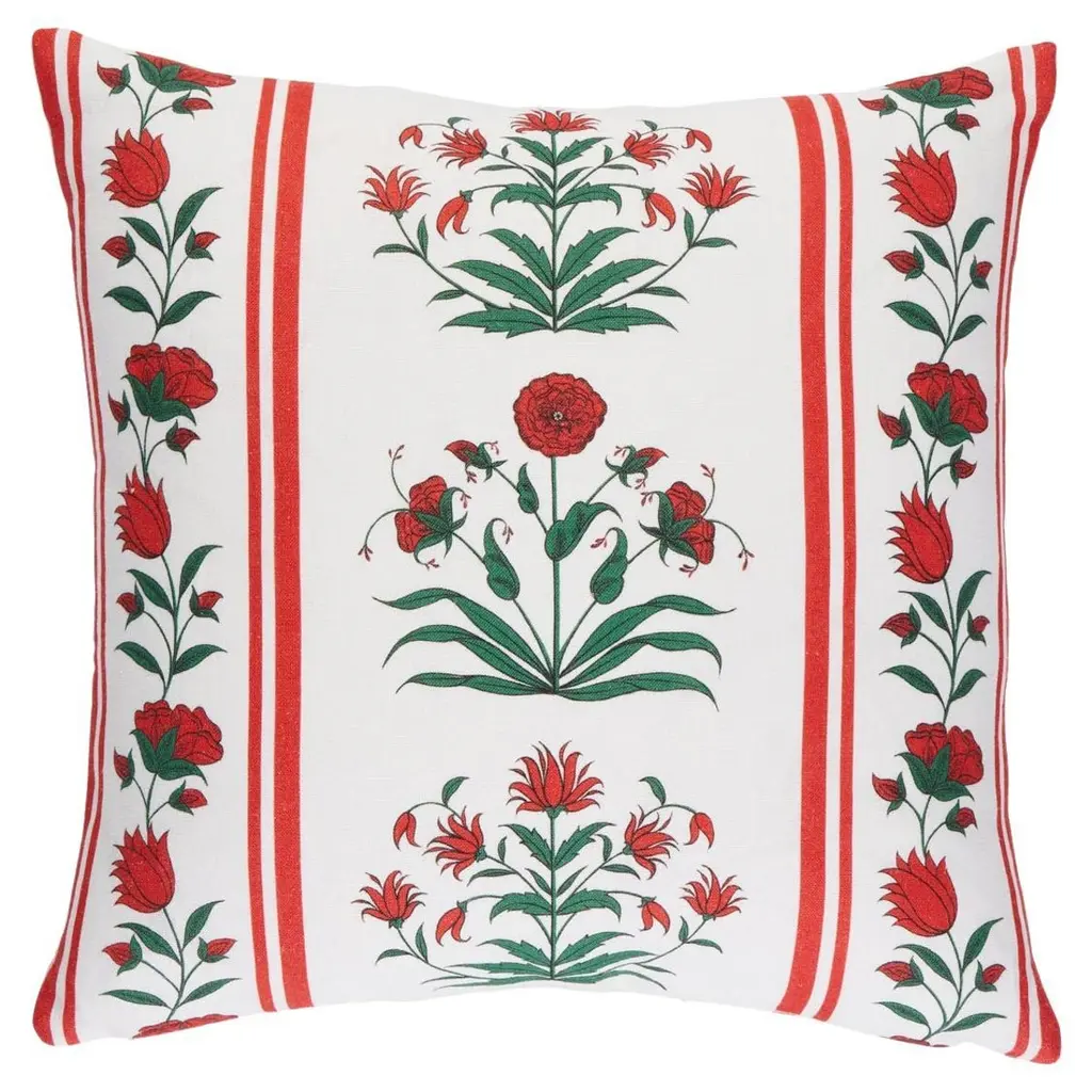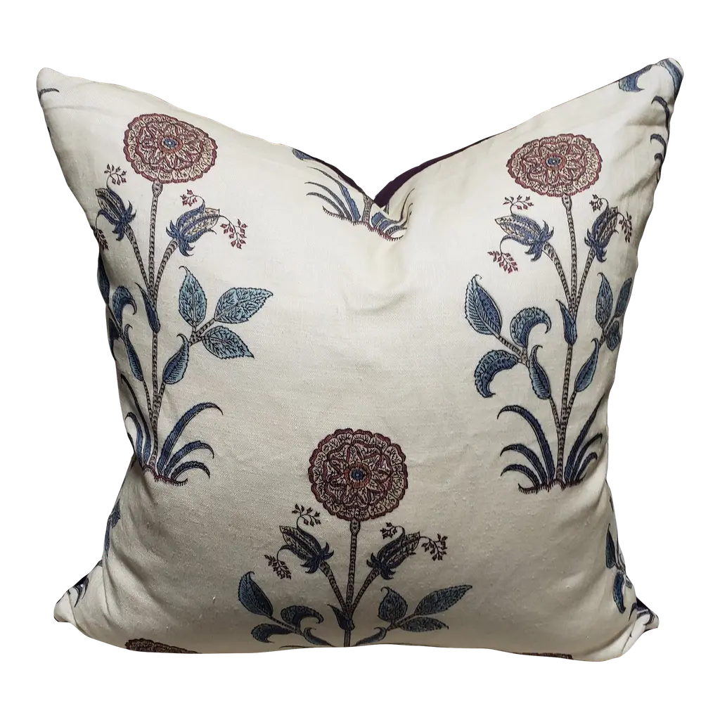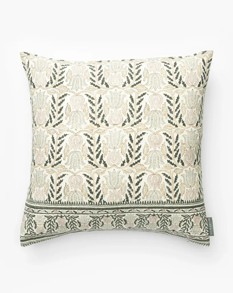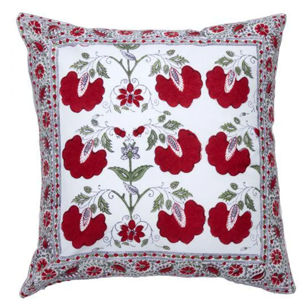 With an exuberant all-over flower pattern, the Janvi design presents a modern take on traditional, nature-inspired motifs. A beautifully detailed border makes for a striking finish. Ancient printing techniques and delightful traditional designs printed on 100% cotton. make our Indian block print pillow covers one of a kind. The hand-crafted nature of these fabrics gives rise to charming imperfections, highlighting the skill and artistry that go into making them. Add a subtle splash of color to a room, or bury your sofa and bed in an eclectic blend of patterns and hues with these chic Indian style pillow covers. Materials: 100% cotton. Product Features: Finished with an envelope closure on the edge for easy reversibility. Decorative Pillowcase/Pillow Case - cover only. Insert not included. Crafts: Hand block printing. DIMENSIONS Pillow Cover: 18" x 18" square CARE & MAINTENANCE Protect from direct sunlight when using. Hand or machine wash separately in cold water on gentle cycle. Use a mild detergent without any bleach or fabric softeners. Do not soak or wring the fabrics. Scrub gently if needed. Tumble dry on low heat or air dry in the shade. Iron at medium setting. Test stain remover on a small area before applying.