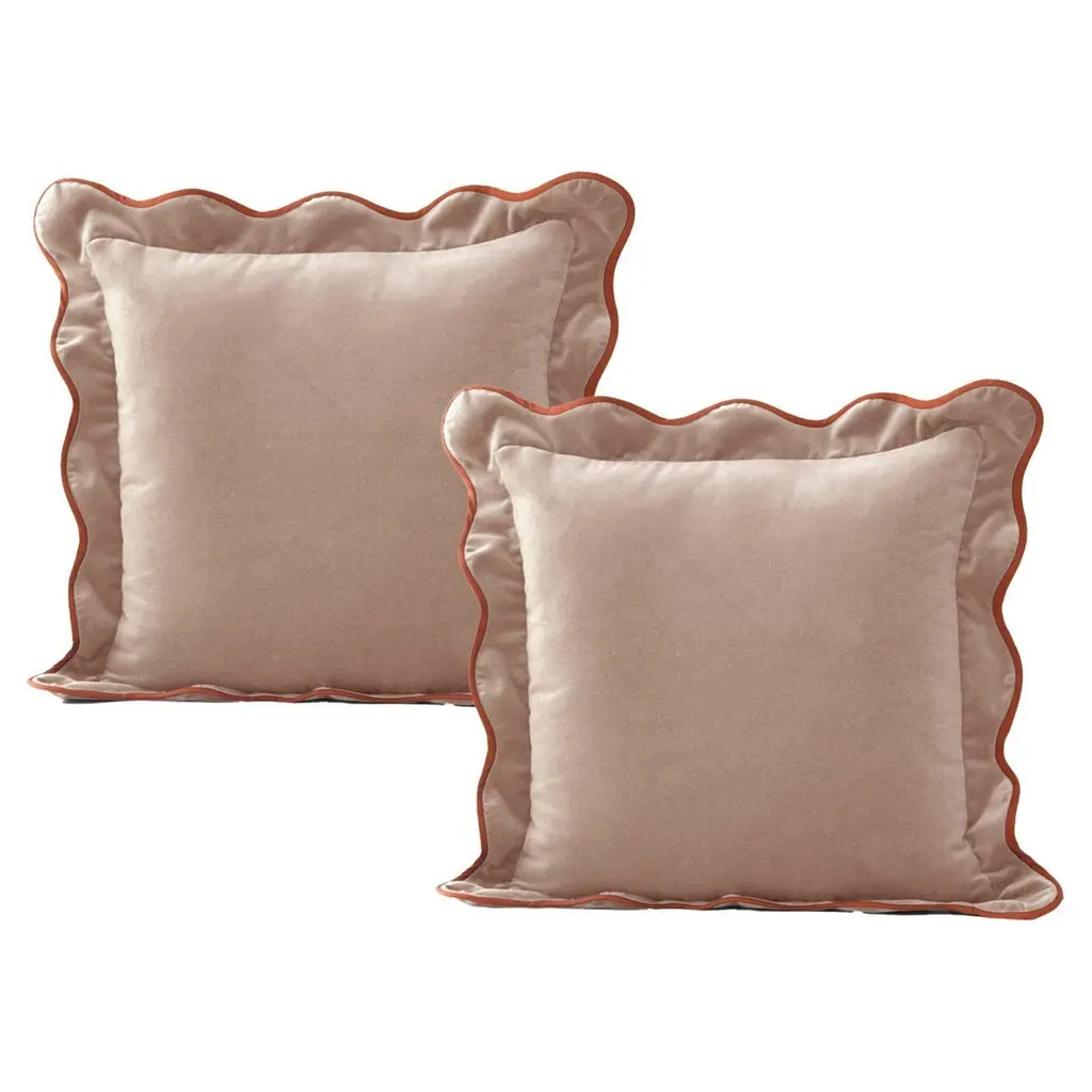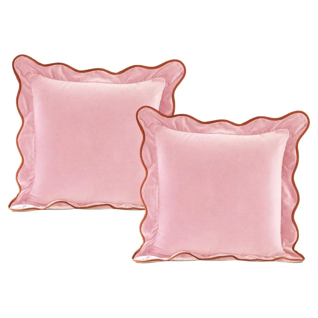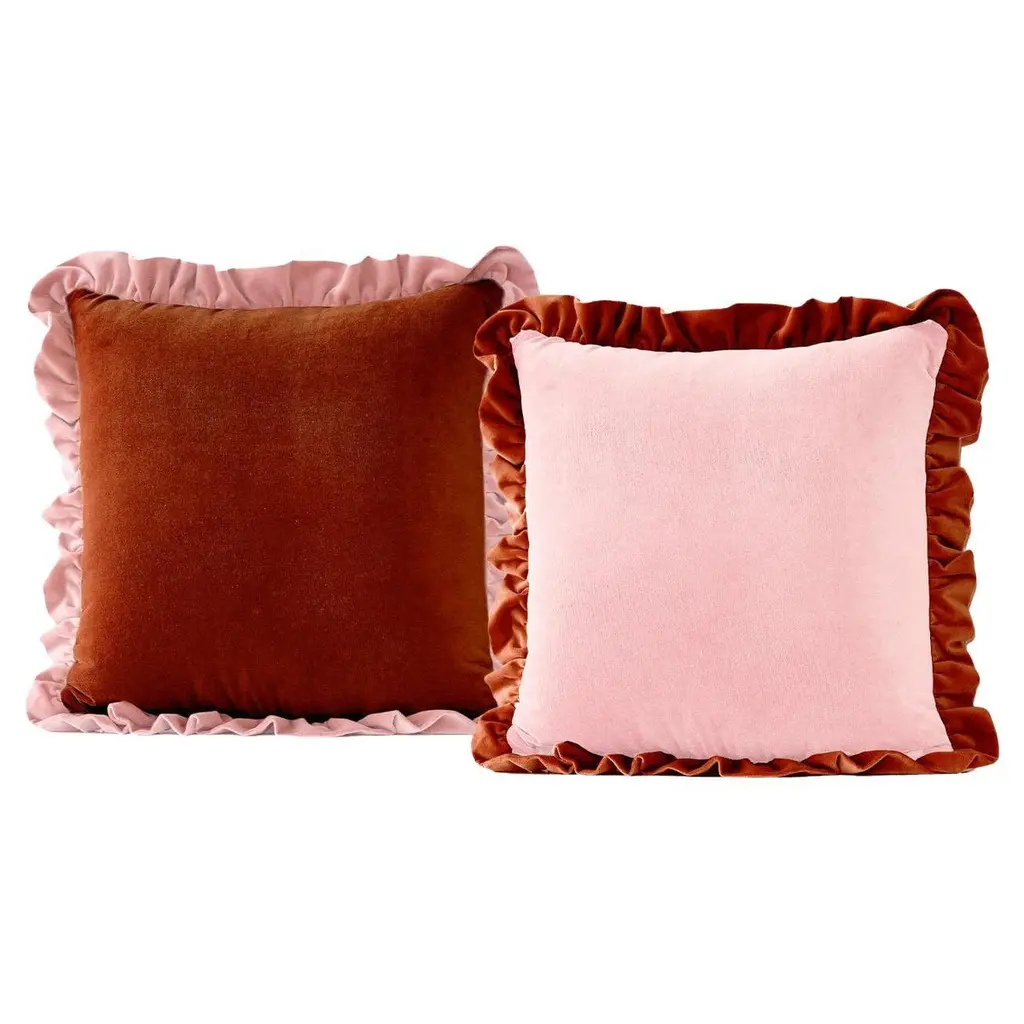 Jasper Brick And Pink - Set Of 2 Velvet Deluxe Handmade Frilled Cushions