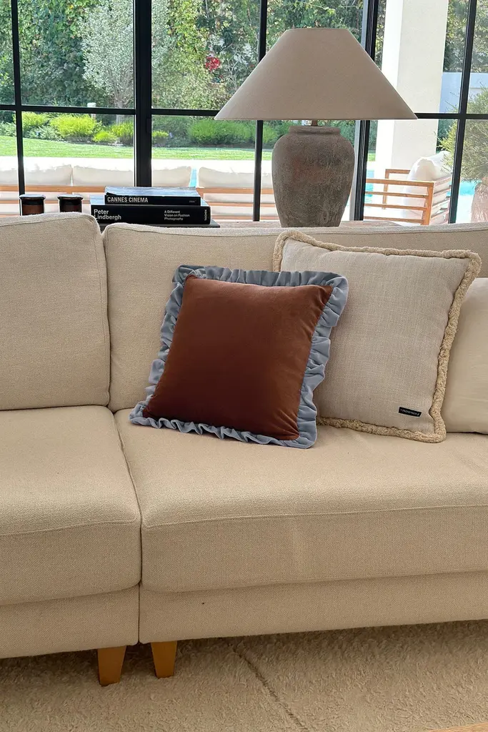 Transform your space with a talisman for the home of beauty, good energies and comfort.Elevate your home’s ambiance with our handcrafted cushions, designed to bring beauty, positive energies, and comfort.Each cushion is handmade in Portugal by family runed business, using high-quality cotton velvet, ensuring both luxury and durability.- Size: Approximately 45x45 cm each + ruffles lenght- Material: Premium 100% cotton velvet. Concealed zipper - Care Instructions: Dry clean only to maintain its pristine condition- Anti-allergic cushion pad/filler included- Craftsmanship: Hand-tailored in Portugal, each piece is unique. Slight variations may occurDesigned to make your world a little happier. Try it!