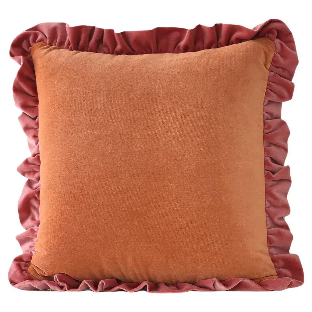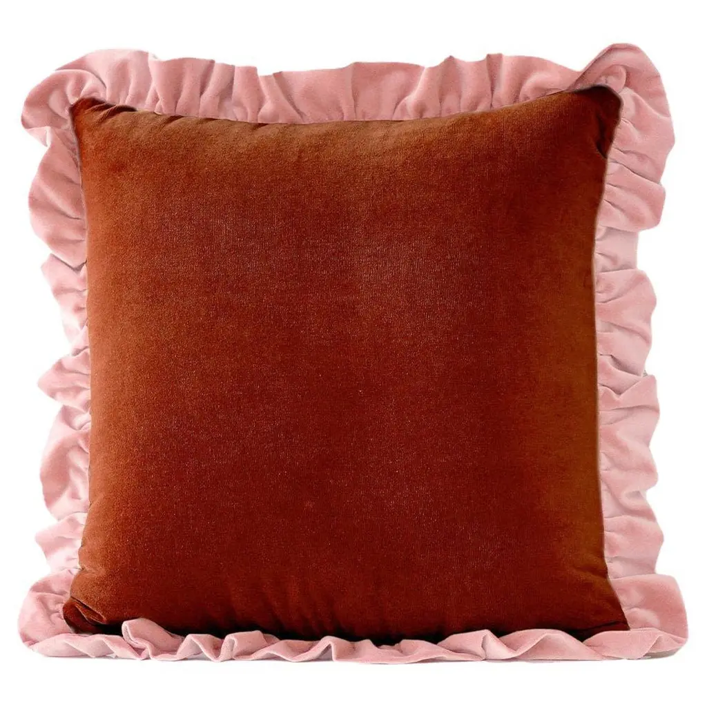Jasper Rose And Camel Ruffled Velvet Deluxe Handmade Decorative Pillow