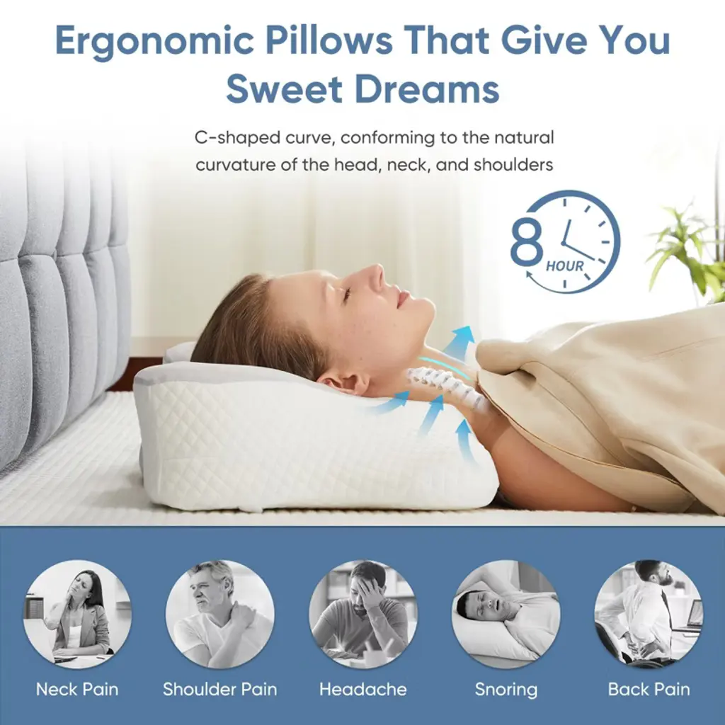 Experience unparalleled comfort and support with our premium memory foam pillow designed for a good night's sleep. Boasting an ergonomic design, this pillow cradles your head and neck in the perfect position, providing exceptional support and pain relief. The slow rebound memory foam adapts to your unique shape, ensuring continuous comfort throughout the night.Our pillow comes with a breathable, skin-friendly cover that enhances airflow, keeping you cool and comfortable. The hidden zipper ensures a seamless look and the removable pillowcase makes it easy to maintain hygiene by allowing for convenient washing. With two different heights, our pillow caters to most people's needs, helping to improve your sleeping position and overall sleep quality. You will find it so comfortable that you won't want to leave your bed. Enjoy the perfect balance of breathable and cool materials, ensuring you wake refreshed and ready for your day.Upgrade your sleep experience with our memory foam pillow, designed to provide the ultimate support while enhancing your comfort and sleep quality.