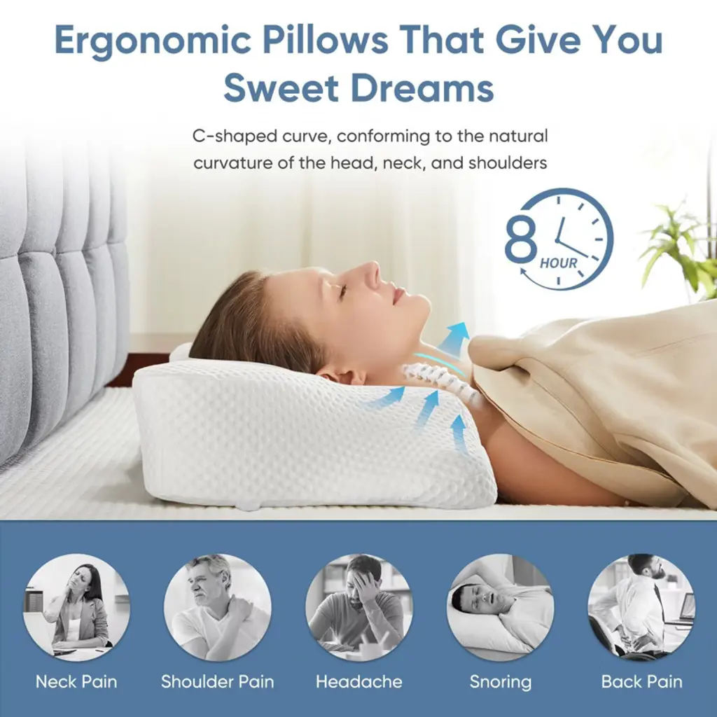 Experience unparalleled comfort and support with our premium memory foam pillow designed for a good night's sleep. Boasting an ergonomic design, this pillow cradles your head and neck in the perfect position, providing exceptional support and pain relief. The slow rebound memory foam adapts to your unique shape, ensuring continuous comfort throughout the night.Our pillow comes with a breathable, skin-friendly cover that enhances airflow, keeping you cool and comfortable. The hidden zipper ensures a seamless look and the removable pillowcase makes it easy to maintain hygiene by allowing for convenient washing. With two different heights, our pillow caters to most people's needs, helping to improve your sleeping position and overall sleep quality. You will find it so comfortable that you won't want to leave your bed. Enjoy the perfect balance of breathable and cool materials, ensuring you wake refreshed and ready for your day.Upgrade your sleep experience with our memory foam pillow, designed to provide the ultimate support while enhancing your comfort and sleep quality.