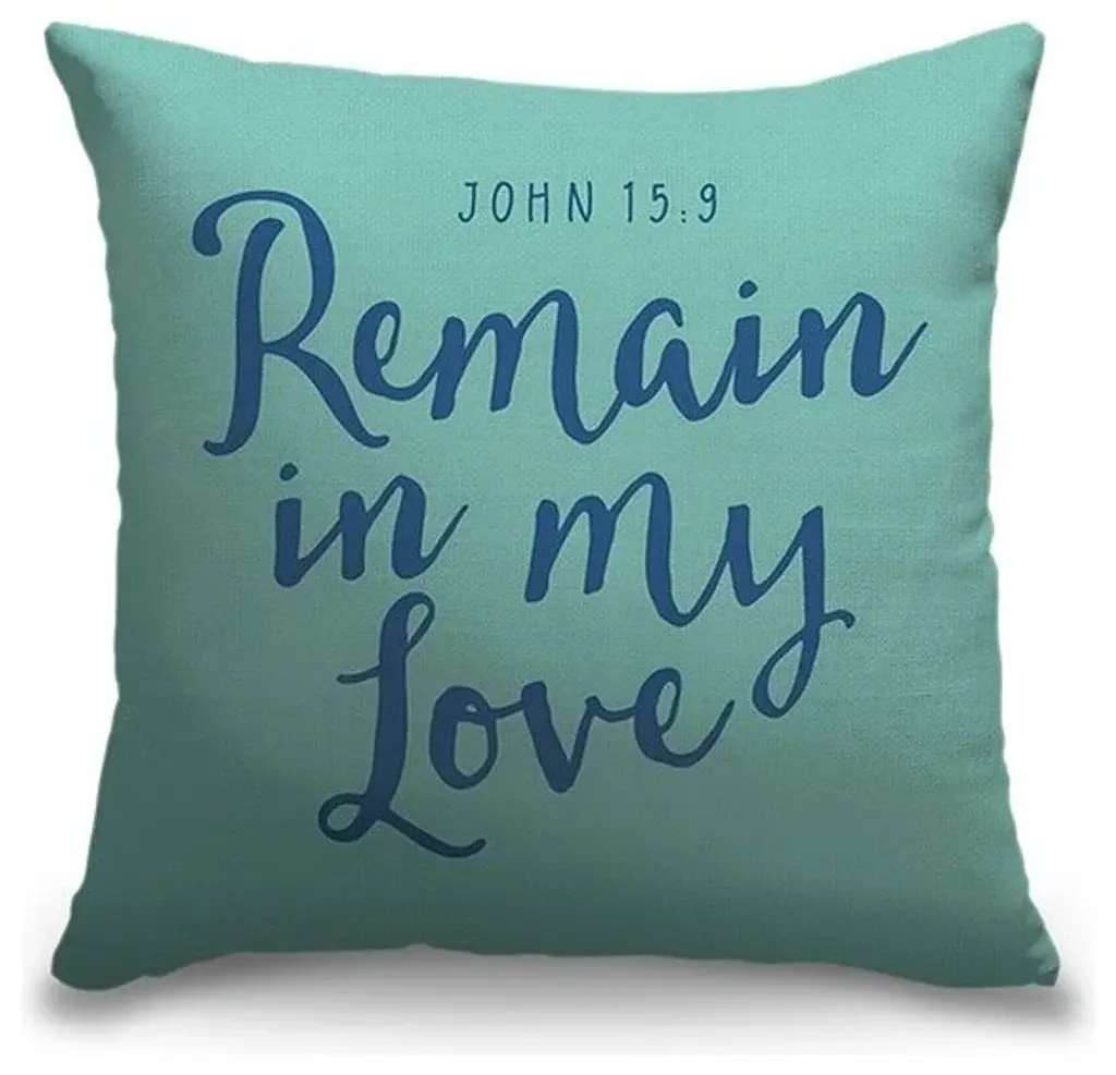"John 15:9 - Scripture Art In Blue And Teal" Outdoor Pillow 16"x16"