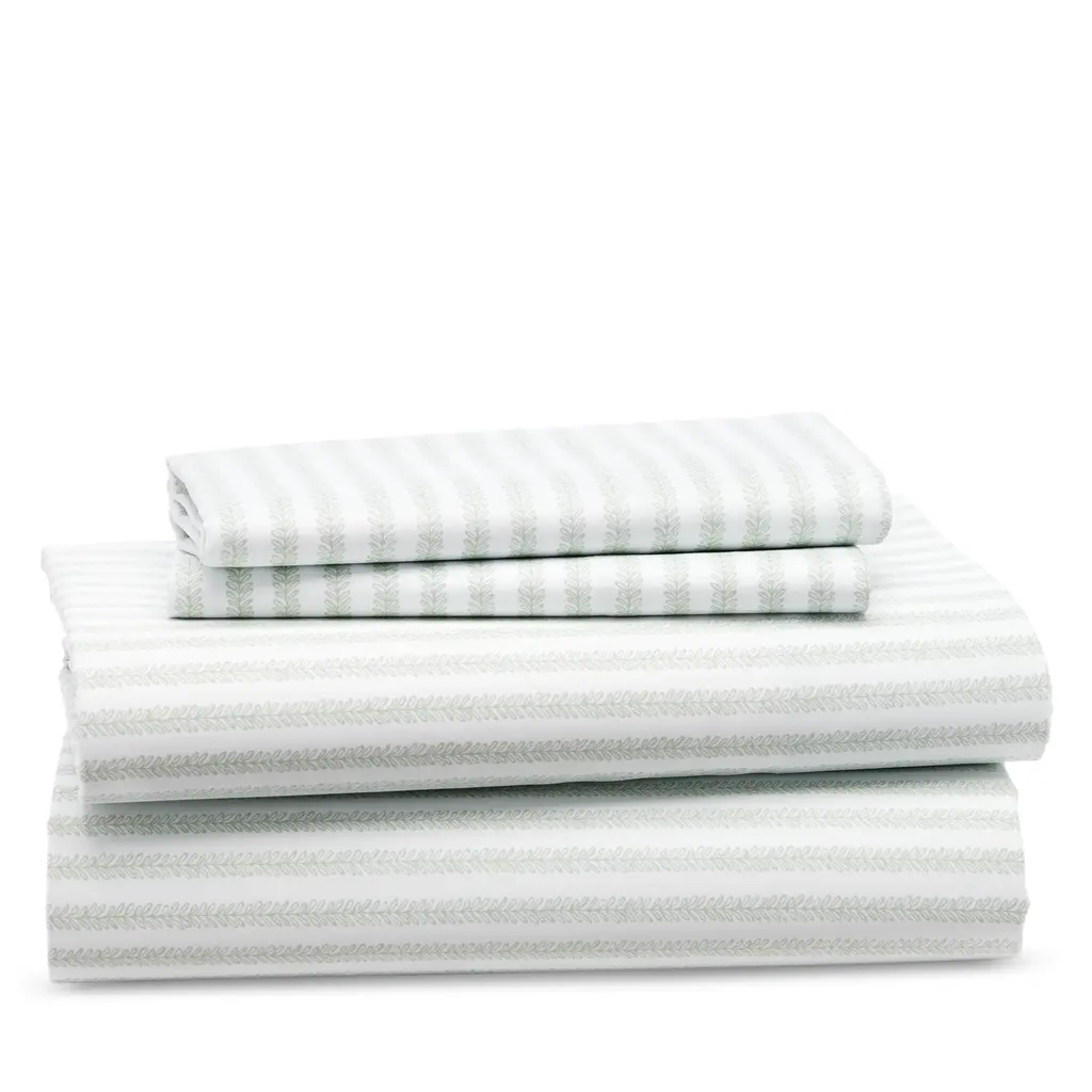 John Robshaw's iconic Cinde print is now available as an organic sheet set in Light Indigo and Sage. John thinks of this print as stylized rain, but the workshop dubbed it "duckbills," which is actually more fun! * 200 Thread Count organic cotton percale. * Machine wash cold separately, delicate cycle, tumble dry low, do not bleach, iron at medium setting if necessary. * Imported#### *Dimensions** Standard (Set of 2): 20" x 30"* King (Set of 2): 20" x 39"