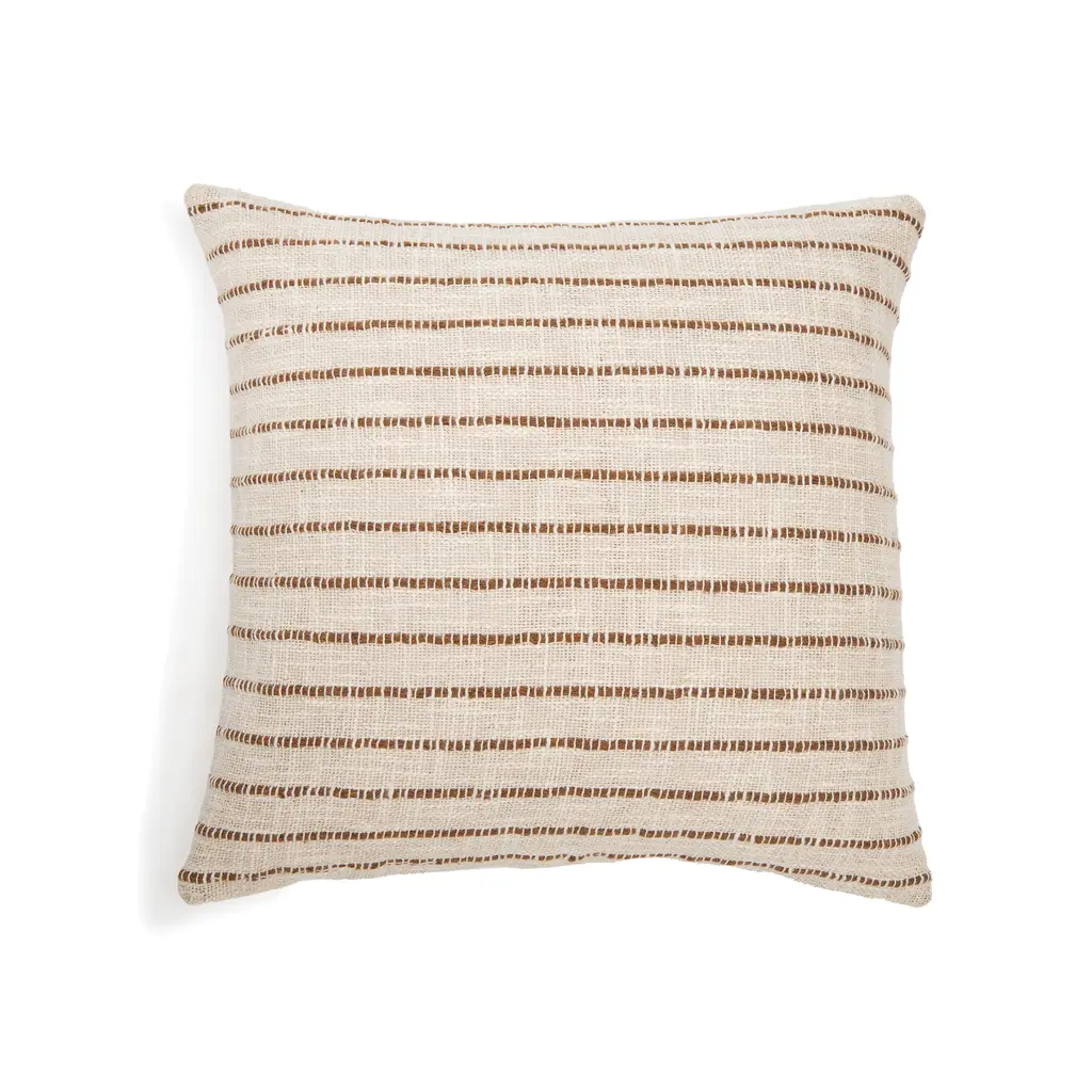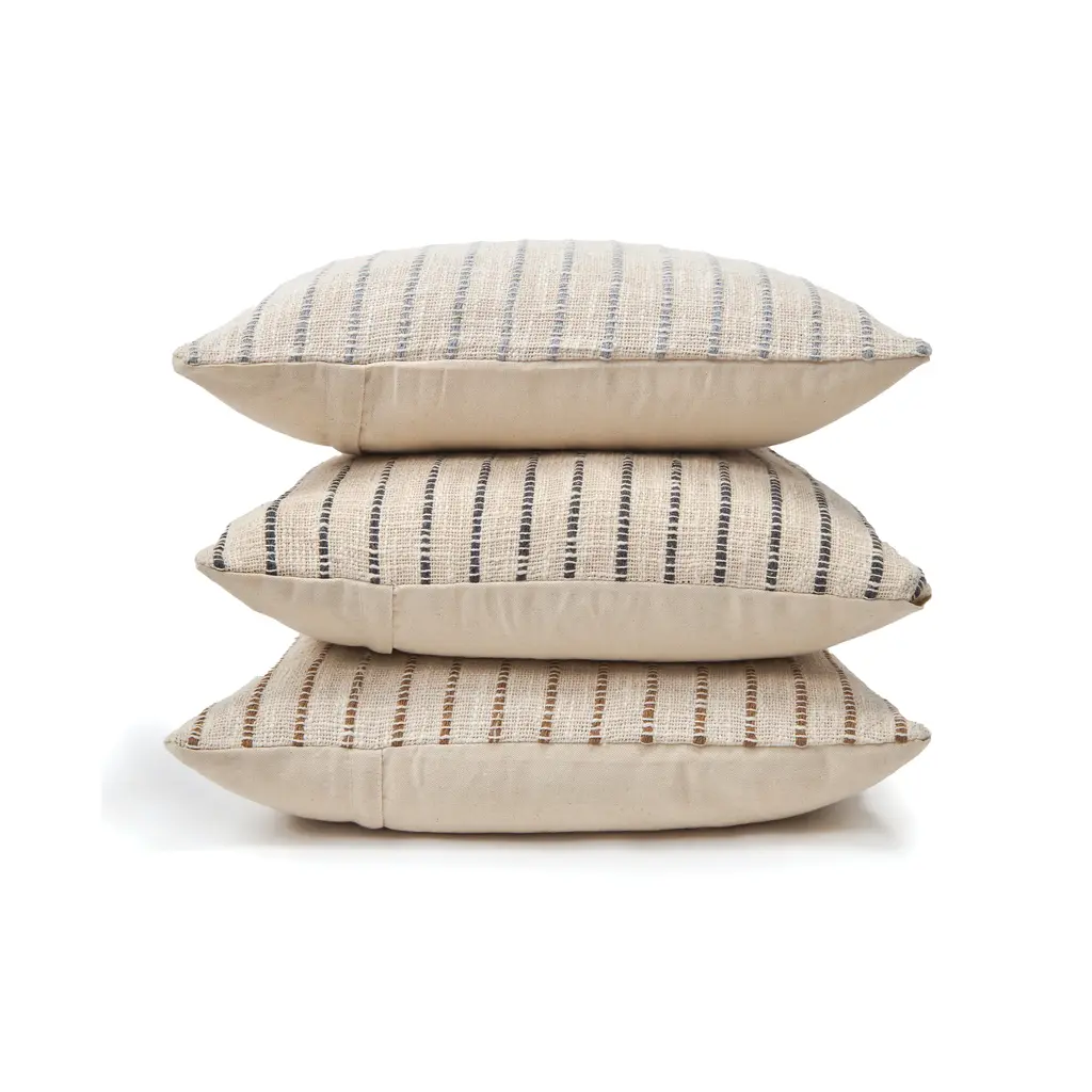 Indulge in warmth and relaxation with the Jojo Throw Pillow from Pom Pom At Home. Made from soft, breathable recycled cotton, its generous size and handwoven design offer a cozy, artisanal charm. Choose from ivory with blue grey, walnut, or charcoal stitching for a sustainable, stylish addition to your bed or sofa. Highlights