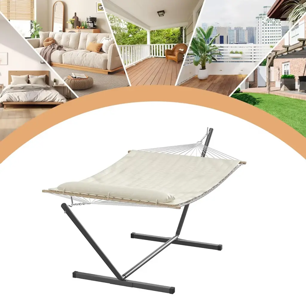 Jojoka Curved-bar 2 Person Hammock With Stand,detachable Pillow,portable Carrying Bag For Outdoor