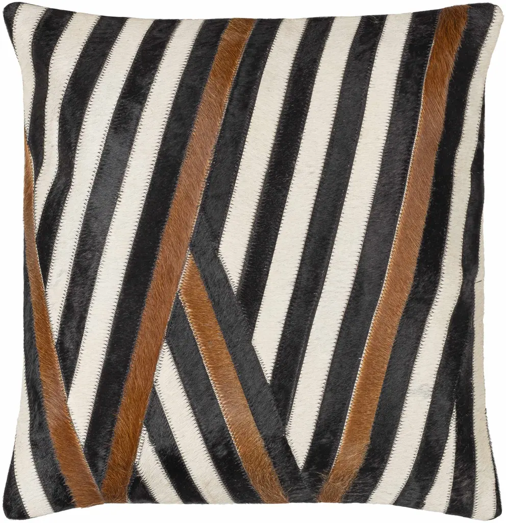 Jolene 20"x20" Stripe Hide Accent Pillow, Black/brown
