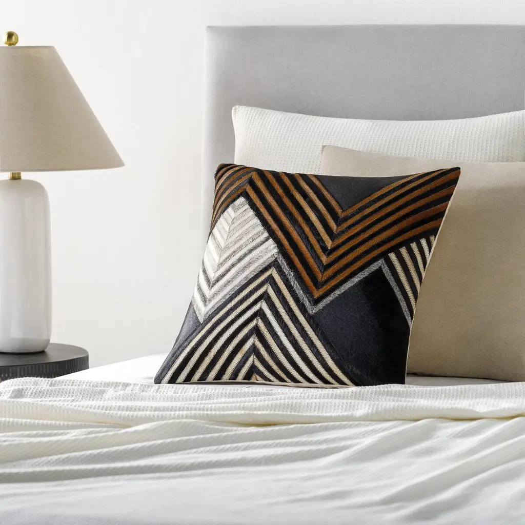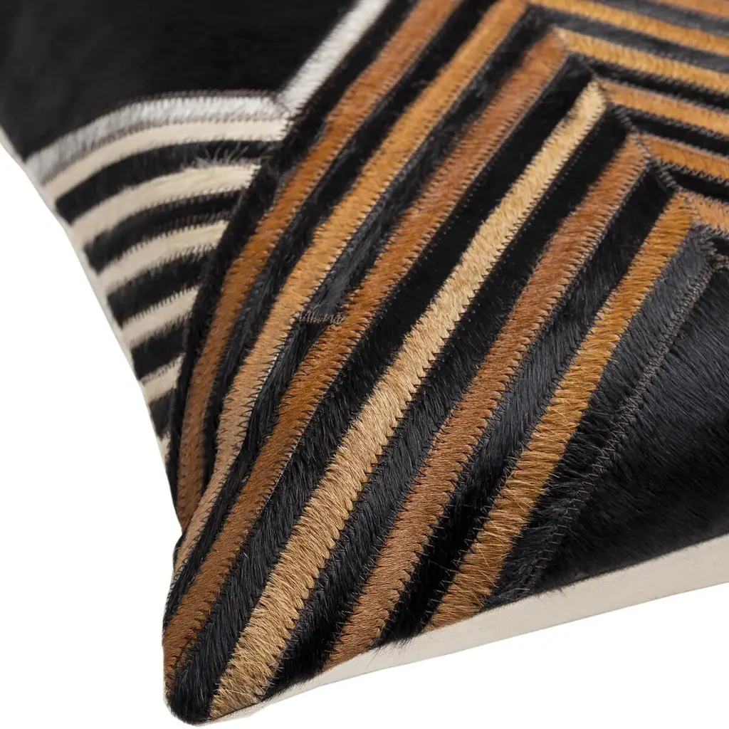 Jolene 20"x20" Zig Zag Hide Accent Pillow, Black/brown