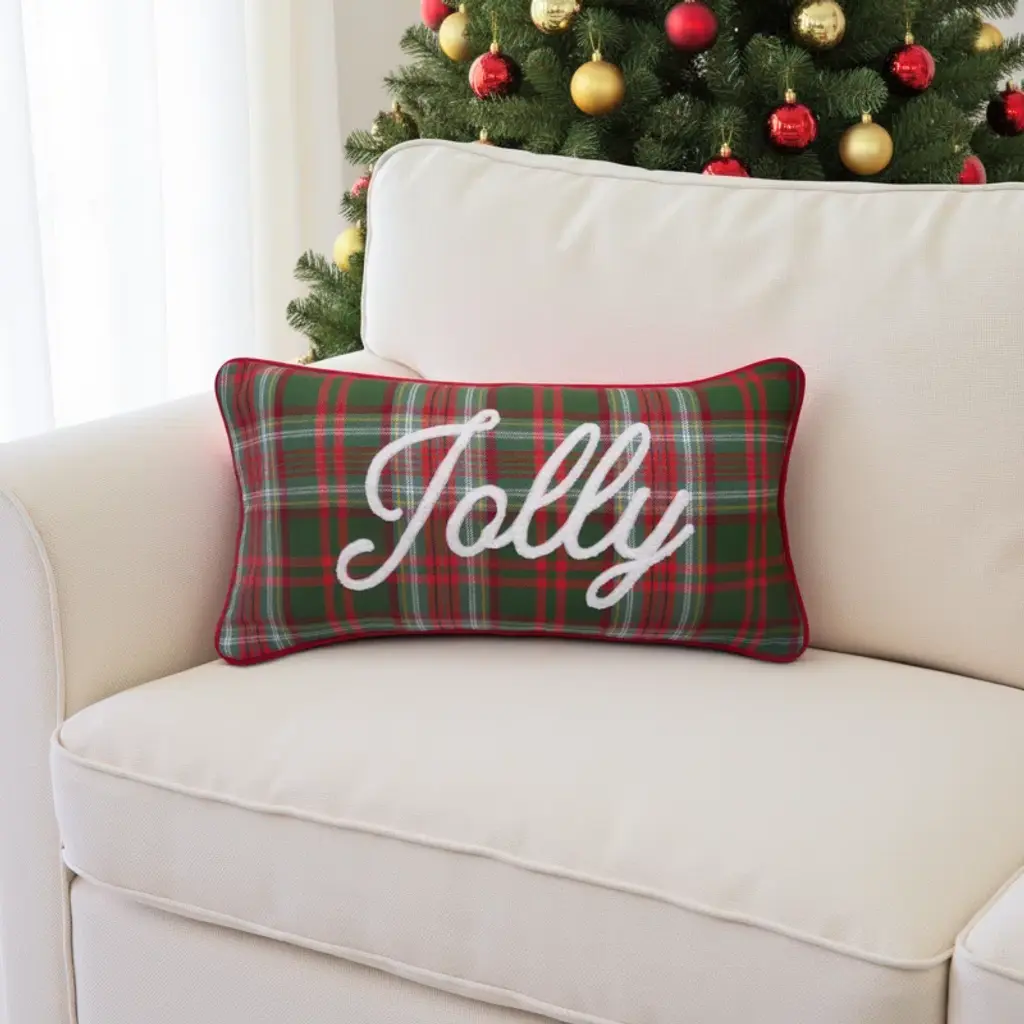 Deck the halls, and your home, with the Jolly Plaid Pillow. Coordinate with festive solids and patterns for a cohesive Christmas look, or pair with a mug of hot cocoa and your favorite fuzzy slippers.