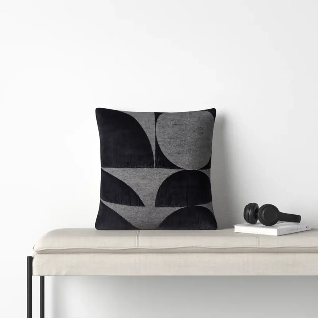 The softest cotton velvet is embroidered on contemporary shapes to create a tonal pillow that is such modern fun! This pillow is at home in decor where simplicity and minimalism are the goal. The tonality that is created with the slightly lighter embroidery gives a light dimension to this pillow. Knife-edged, this pillow features a solid coordinating cotton back with a hidden zipper closure for ease of fill.
