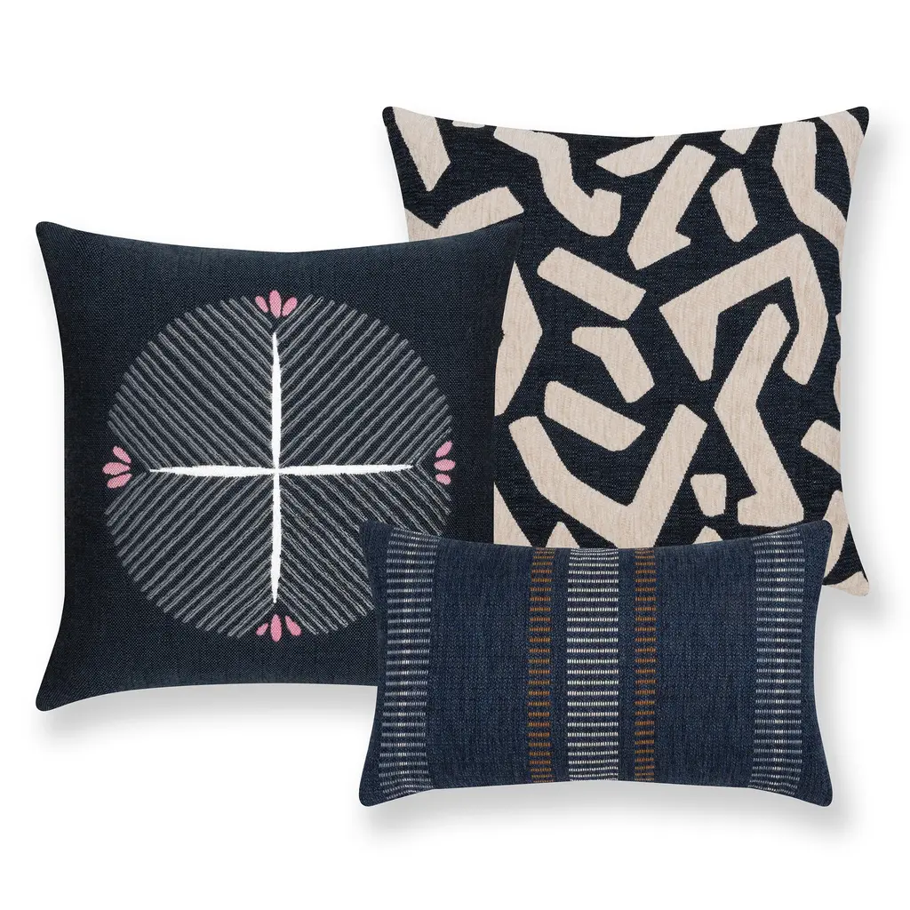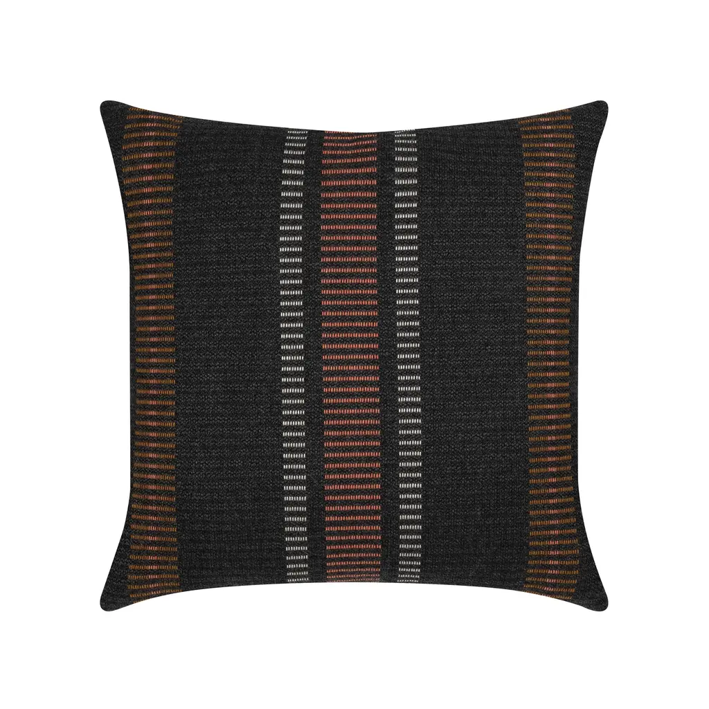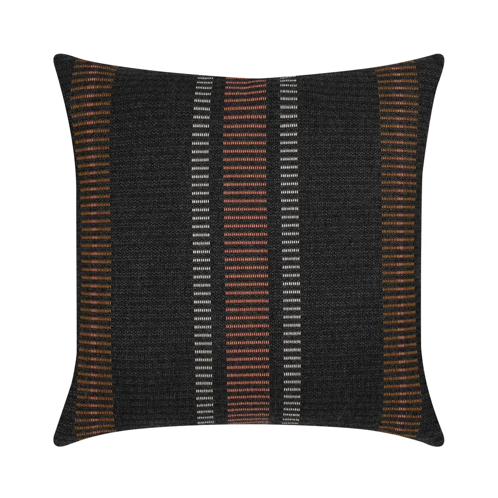 Made from ultra soft solution dyed acrylic yarn, this pillow features a textural ground in a blend of monochromatic colors and contrasting layers of tiny stripes to create bands of color in a modern stripe. Features