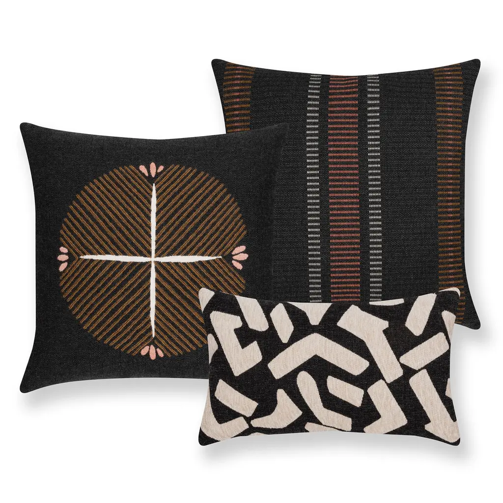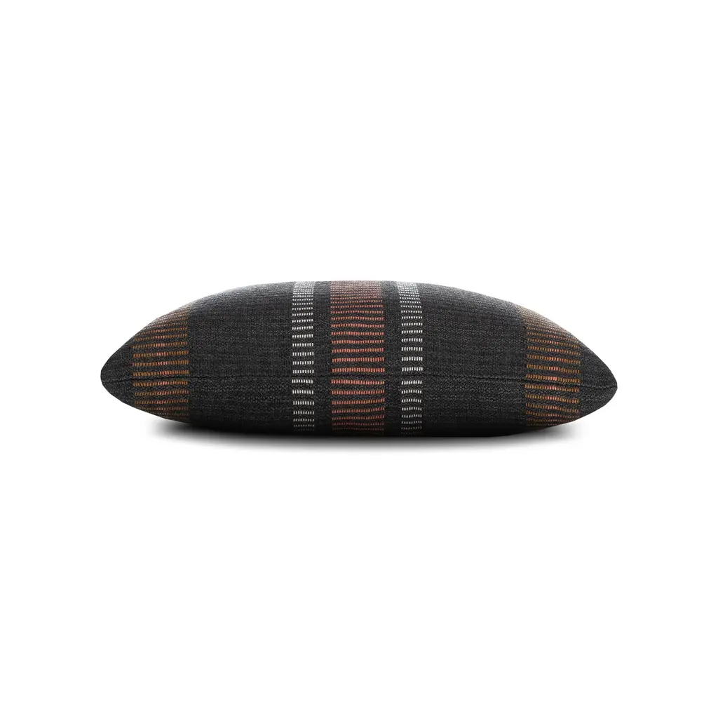 Made from ultra soft solution dyed acrylic yarn, this pillow features a textural ground in a blend of monochromatic colors and contrasting layers of tiny stripes to create bands of color in a modern stripe. Features