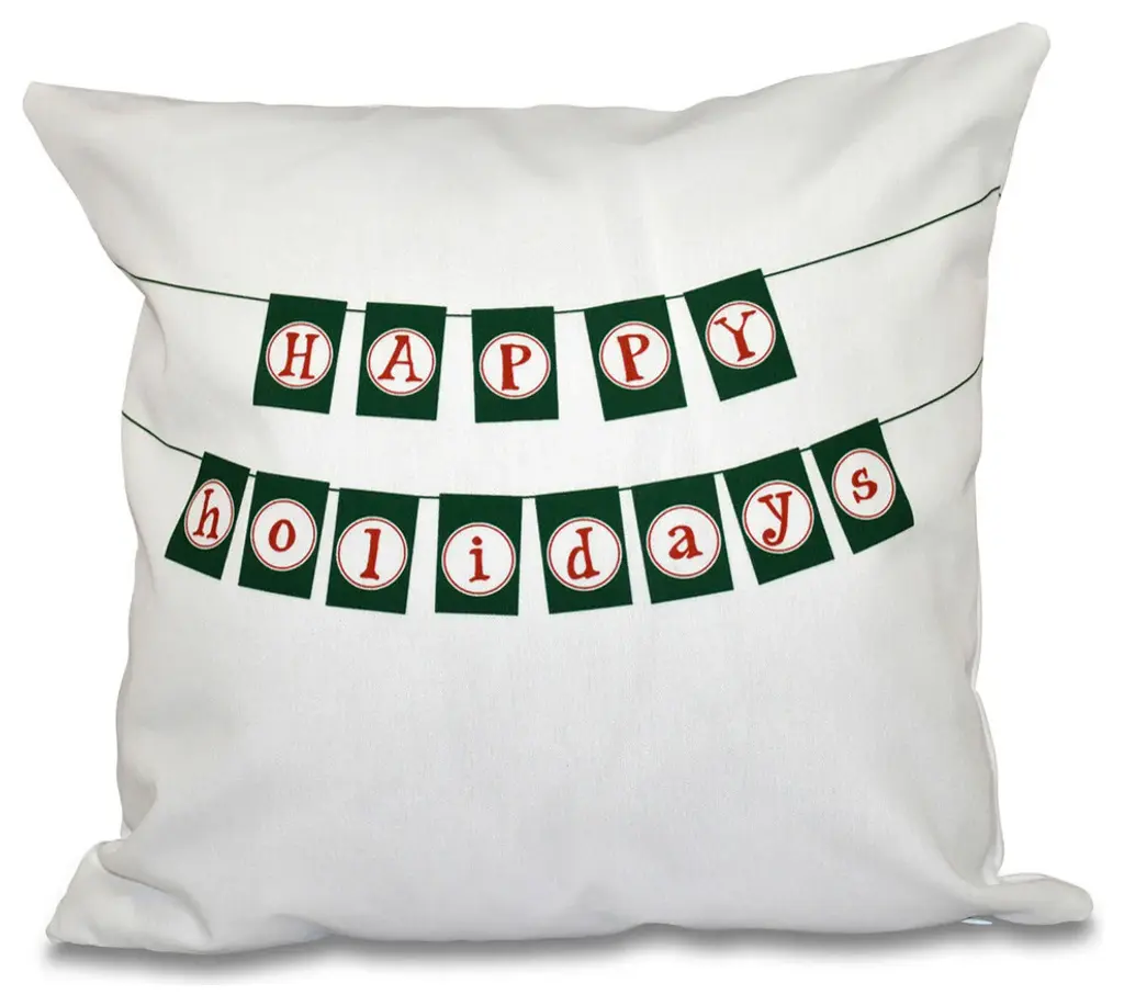 Joy Filled Season, Decorative Holiday Word Print Pillow, Dark Green, 26"x26"
