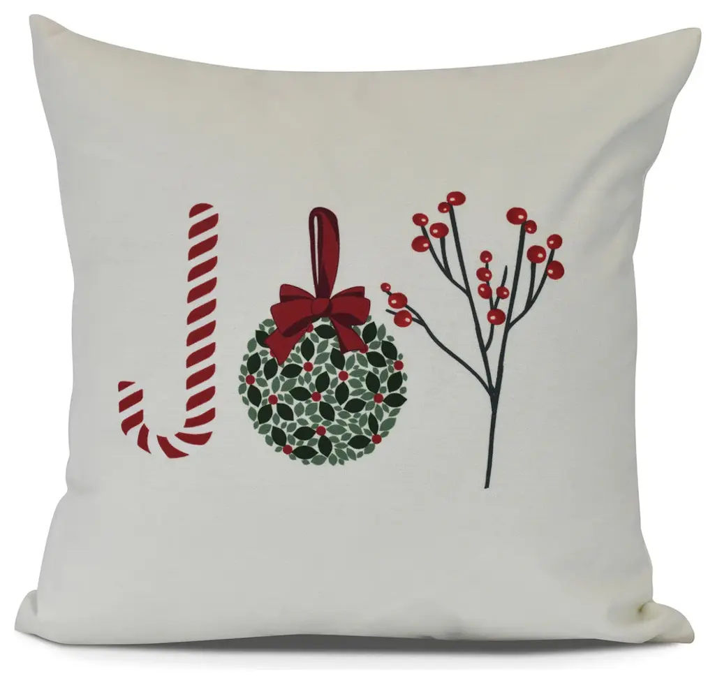 Joy Filled Season, Holiday Word Print Pillow, Ivory And Cream, 18"x18"