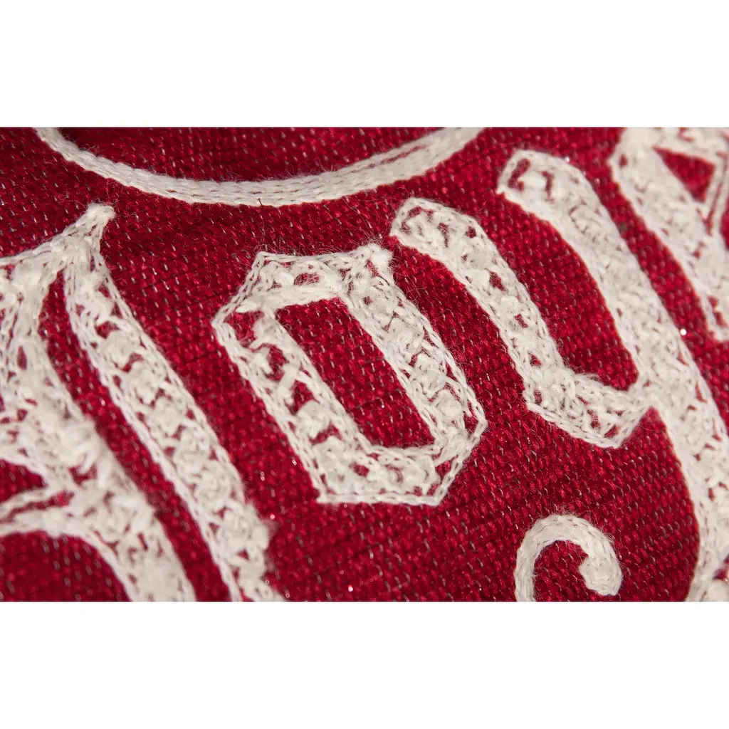 Decorate with a Joyous message of festive Christmas cheer! Embroidered with jingle bell accents, these accent pillows are sure to add holiday warmth to any corner of your home. Decorate with a Joyous message of festive Christmas cheer! Embroidered with jingle bell accents, these accent pillows are sure to add holiday warmth to any corner of your home. Embroidered,Polyester with Polyester fill,Jingle Bell accents,Colors: Christmas Red and While