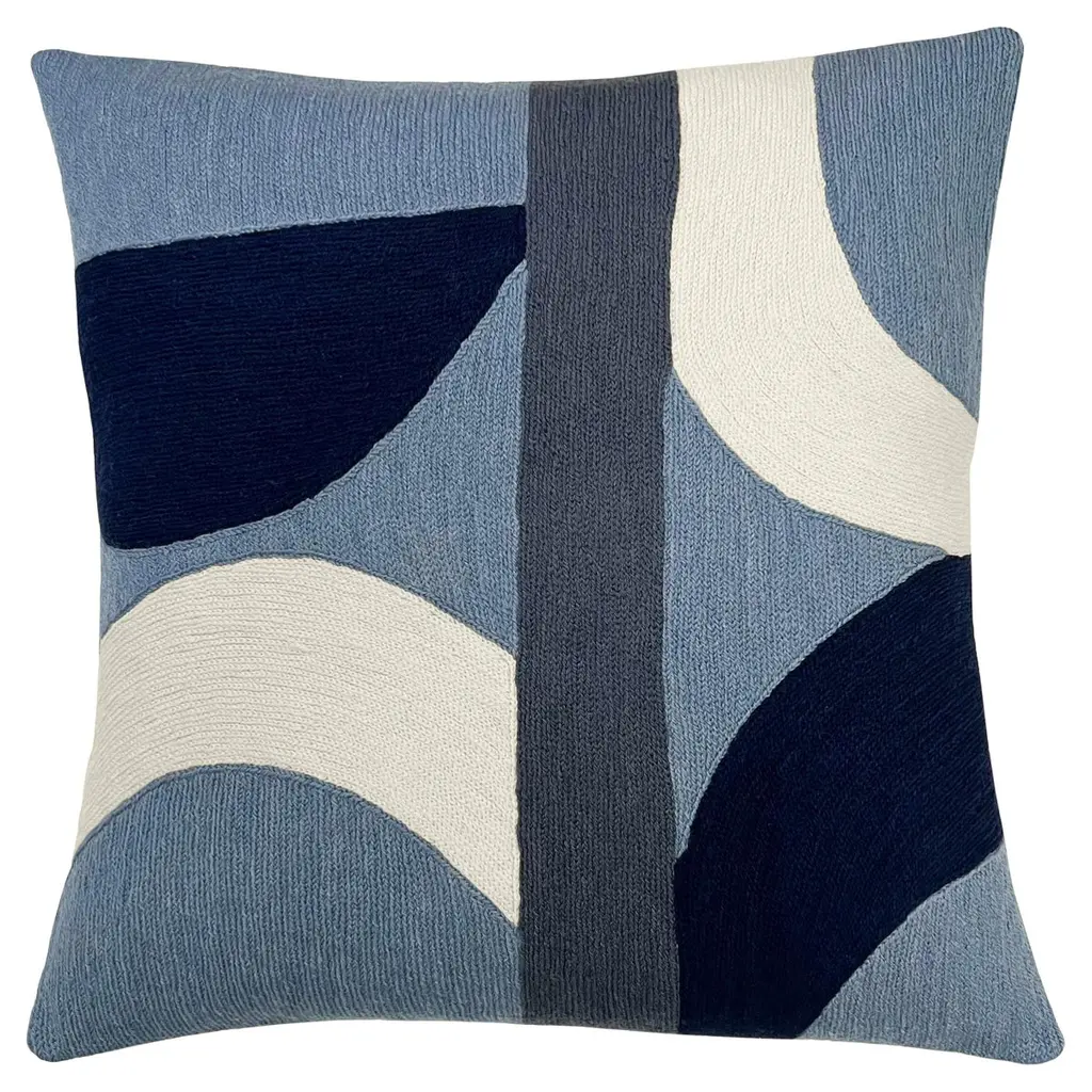 Judy Ross Textiles Eclipse Hand-Embroidered Chainstitch Pillow, 18 Inch