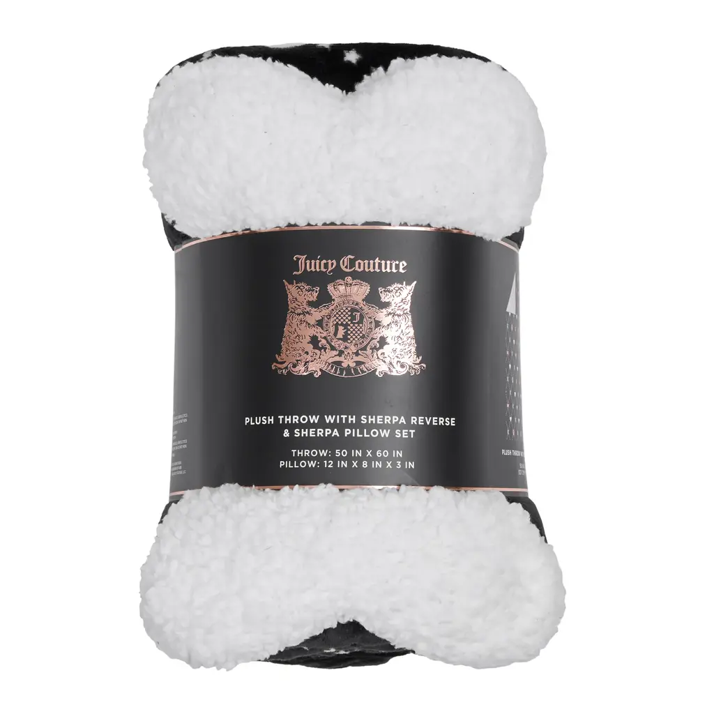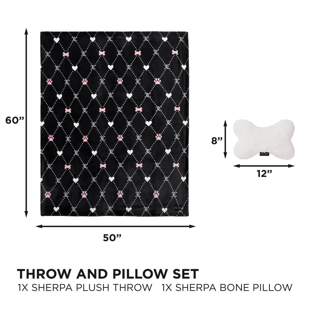 Juicy Couture Paw & Heart Plush Throw And Sherpa Bone Pillow - 50x60 - Black
